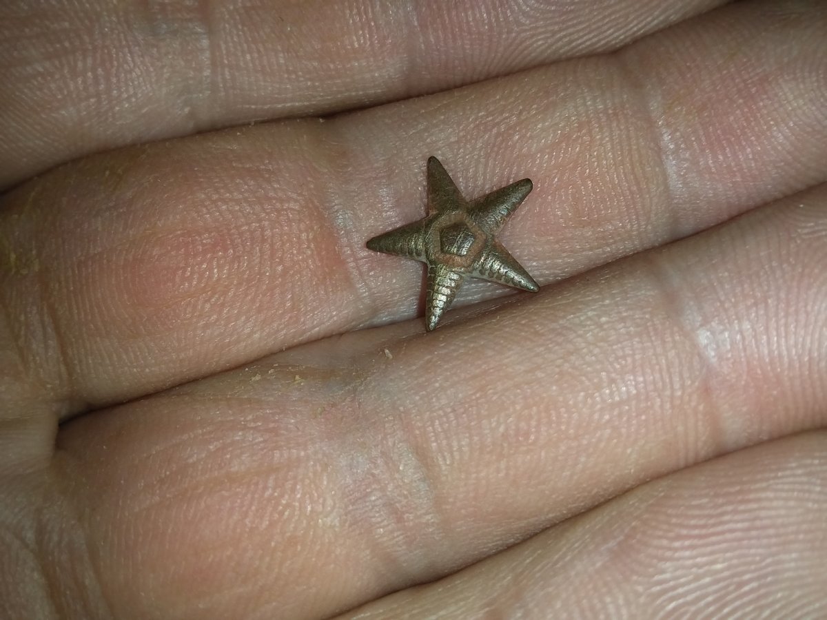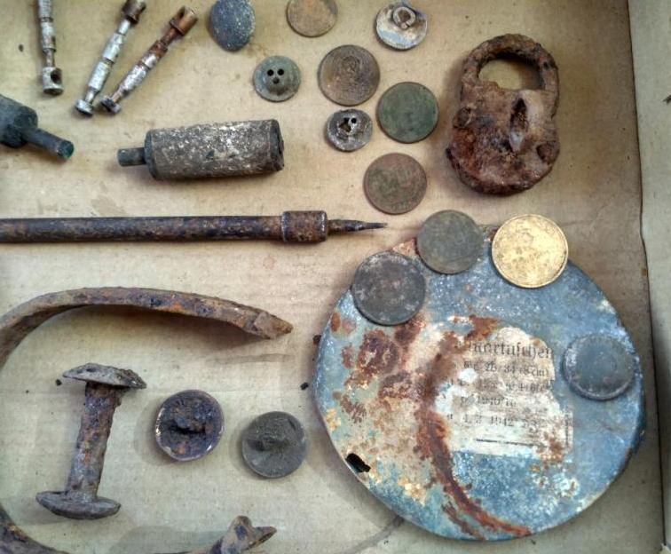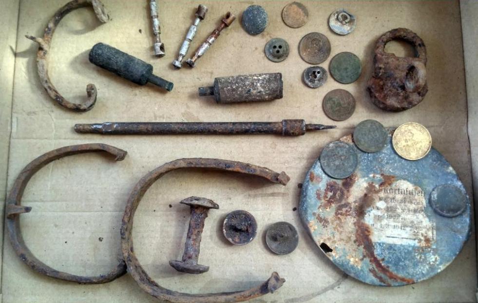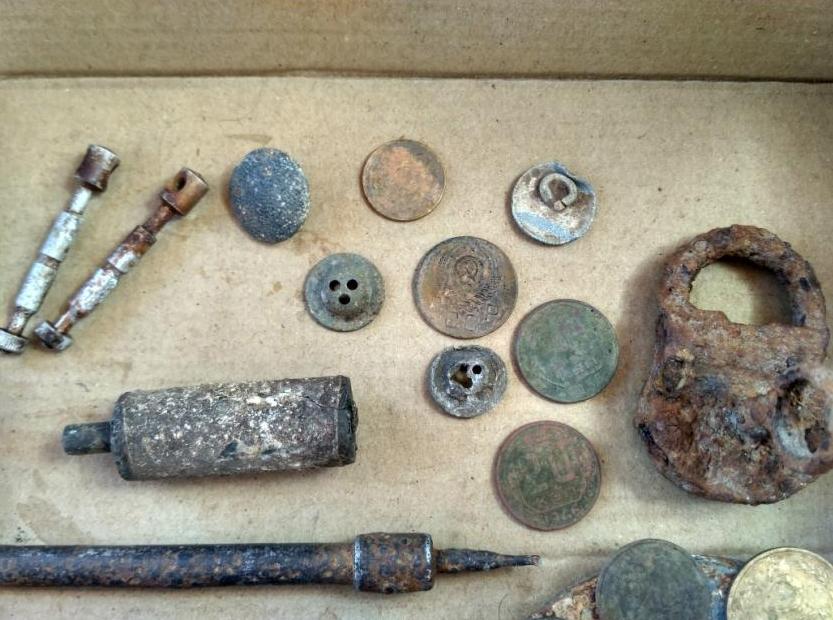 Вітаю, виїхав за старою чорниною на вже неодноразово бите (звісно не тільки мною) місце. Випало два наки, пряжка, розсипуха двушок, гудзик з куркою, та залишки якихось приблуд. Через наки в купу шмурді поки не відправив. Що воно може бути?