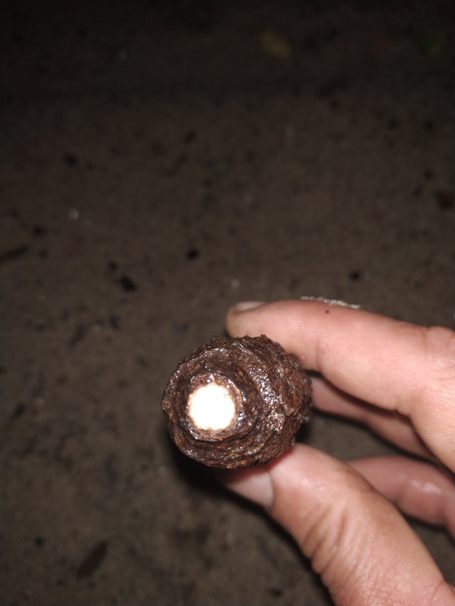 Доброго времени суток. Прогулялся вчера немного: Это, когда-то было сбруйной бляшкой в зверином стиле: Неведомый кругляш с немецкими буквами: Это же сколько нужно иметь свободного времени, чтобы так рукожопить: Как думаете, конина?