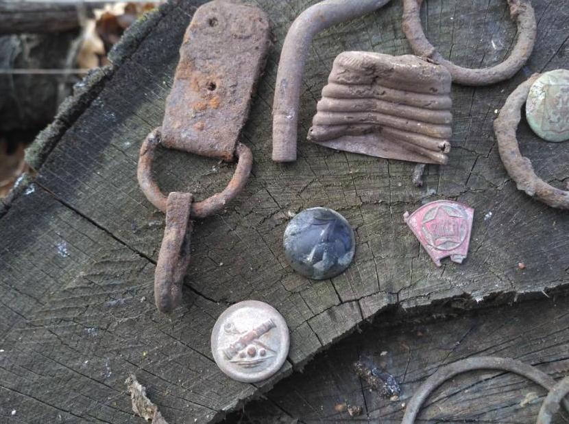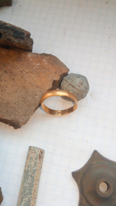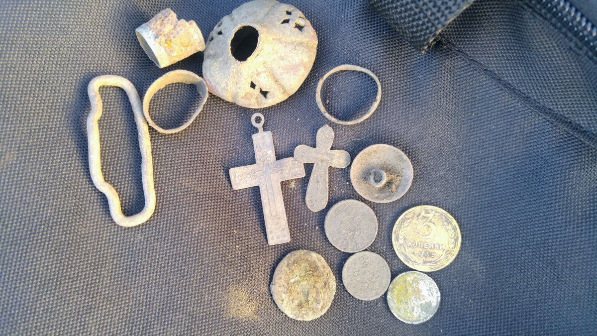 Сегодня снова поехали добивать огородики. Результаты скромные, даже очень.... Кучерявые и бородатые дядьки поховались, не вылазят гады, равно как и их жёны, всякие Дивы и Августы. Жена подняла сломанный серебряный крестик с пробой 800, такой ещё не видел, обычно 84 на всех старых изделиях. И интересный значок с типа эмалями - мышка, играющая на домре или мандолине, жаль что эмали облущились от времени: