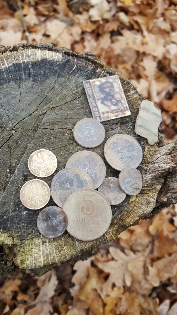 Доброго вечера камрады! Проежал мимо р. Волоская Балаклейка решил пройтись по бережку ( старшенький решил спининг побросать, речушка уже начала подмерзать)! Часик прогулялся с прибором Среди ходячки, выскочил один советик и неожиданно для меня "катькин" какалик!