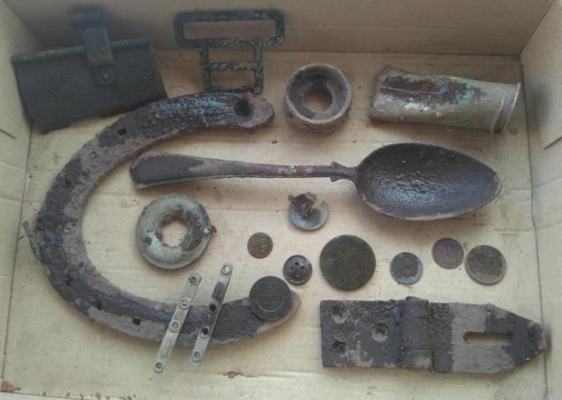 Доброго времени суток, Камрады! Совершили с товарищем поход выходного дня, по разведке. Кое-что удалось извлечь из третьей планеты от Солнца. Особо, в первой половине дня, порадовали денарий Марка Аврелия и полуполтинник Елизаветы. Бусину ЧК нашёл визуально. Во второй половине дня попался вермахтовский складничек. Выпал тыльной стороной ложки вверх, ну все думаю, ложка-вилка! Переворачиваю, а там ложка - "Дядя" ! Уже затемно, нашёл часть чумбурного блока и фибулу. Мои находки на крайнем фото. Всем Добра!