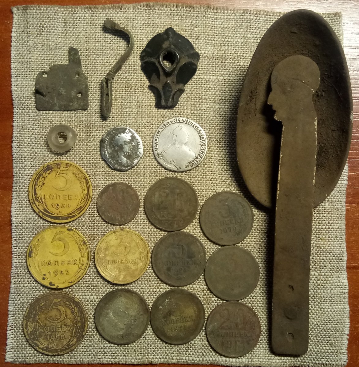 Всем доброго вечерочка. Прогулялись с камрадом Slavon12M и ещё одним товарищем по просторам Харьковской области). Учитывая плотность камрадом на квадратный метр, цель была просто насладиться хорошей погодой и сбить оскомину. Из находок попался какой то солдатик( оч похоже на печать) ,мож кому попадались такие? Полушка 1735; полушка( Анны Иоановны,вроде ; год не узрели;пару рамочников 15 коп; интересные пуги,жаль не в бодром сохране(; колокольчик; пара красивых конин; Сделали сегодня вывод: выбитых мест не бывает, бывает мало выдержки у камрадом) Шмурд не попал на фотосессию))) Всем хабара