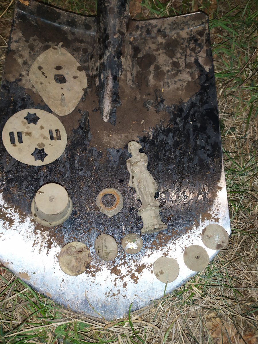 Всем доброго. Вчера намотал 8,5 км по Черному лесу, почти дошел от Островерховки до Хорошево. Сигналов почти нет, между пуговками 620 метров было и это 2 цветных сигнала подряд. На удивление ячейки посреди леса не тронутые, в них валялось несколько РГДэх и куча гильз ППШ. А может и битые, просто выкинули обратно.