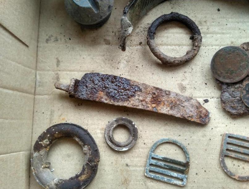 Доброго вечера всем! Смотрю, народ активен сегодня в плане копа! Съездили и мы сегодня в лес: жена—грибы посмотреть, я—интересности поискать. И вышел у меня коп из разряда "хочется обнять и плакать". Хороший, большой сигнал в бруствере—ящик из-под 8 см мин WH, прогнивший. Дай, думаю, землю вытряхну... А там: перчатки офицерские кожаные—УГ, погон унтер-офицера артиллерии WH—УГ, мундштук курительной трубки—прогрызен, немецко-французский словарь—в труху, батарейка от фонарика и крышка банки с 15 см зарядами. Сигнал в бруствере капонира: комбинированные ключи, три, все сломаны. Снова сигнал, бруствер ячейки: пробка. Но по весу не проходит... Так это же серебряная монета, была . По чудом сохранившемуся орлу и весу определил, что "при жизни" это была полтина Николая I. Жена немного набрала немножко грибов: вешенки и опята. Вот такая лебездунья с мачуфроньей. Всем удачи!