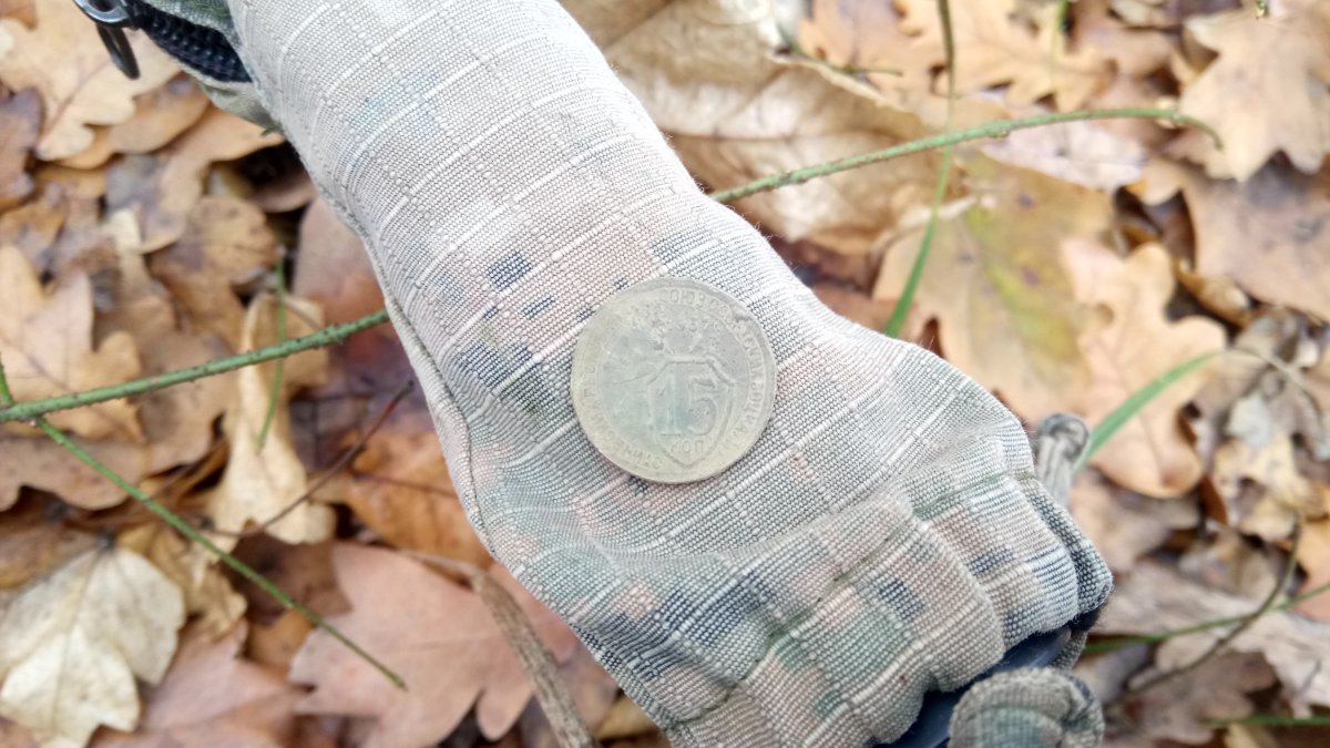 Всем доброго вечера). Приехали с камрадом Slavon12M с лесочка, недалеко от окружной. Побегали сегодня до вечера. По находкам ,как писал кто-то из камрадов на форуме, больше вопросов. Попалась большая монетка ,медь,царизм...все остальное ,только домыслы: 3коп?, год неизвестен. Схожая ситуация с 1коп (. В более норм состоянии попалась 1коп 1914г.Выпала какая то штучка,похожая на окончание ножен. Если нет,то подскажите от чего?проскочило парочка пуг. По войне зацепили какой то девайс с резьбой ,кто в курсе,просветите,плиз. И по пути домой камрад мастерски ))) вызвонил колышек от палатки ,торчал в земле, похоже Ганс забыл Всем хабара