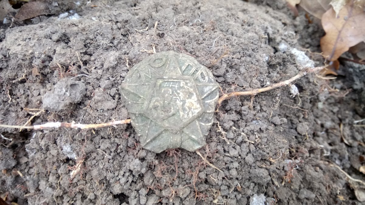 С товарищем посмеялись в лесу, буквально по дороге на коп, говорили что в нашей ветке Камрад выставлял, среди находок, вырезанный из такого значка, центральный пяти угольник. Как говорится, мысли материальны.