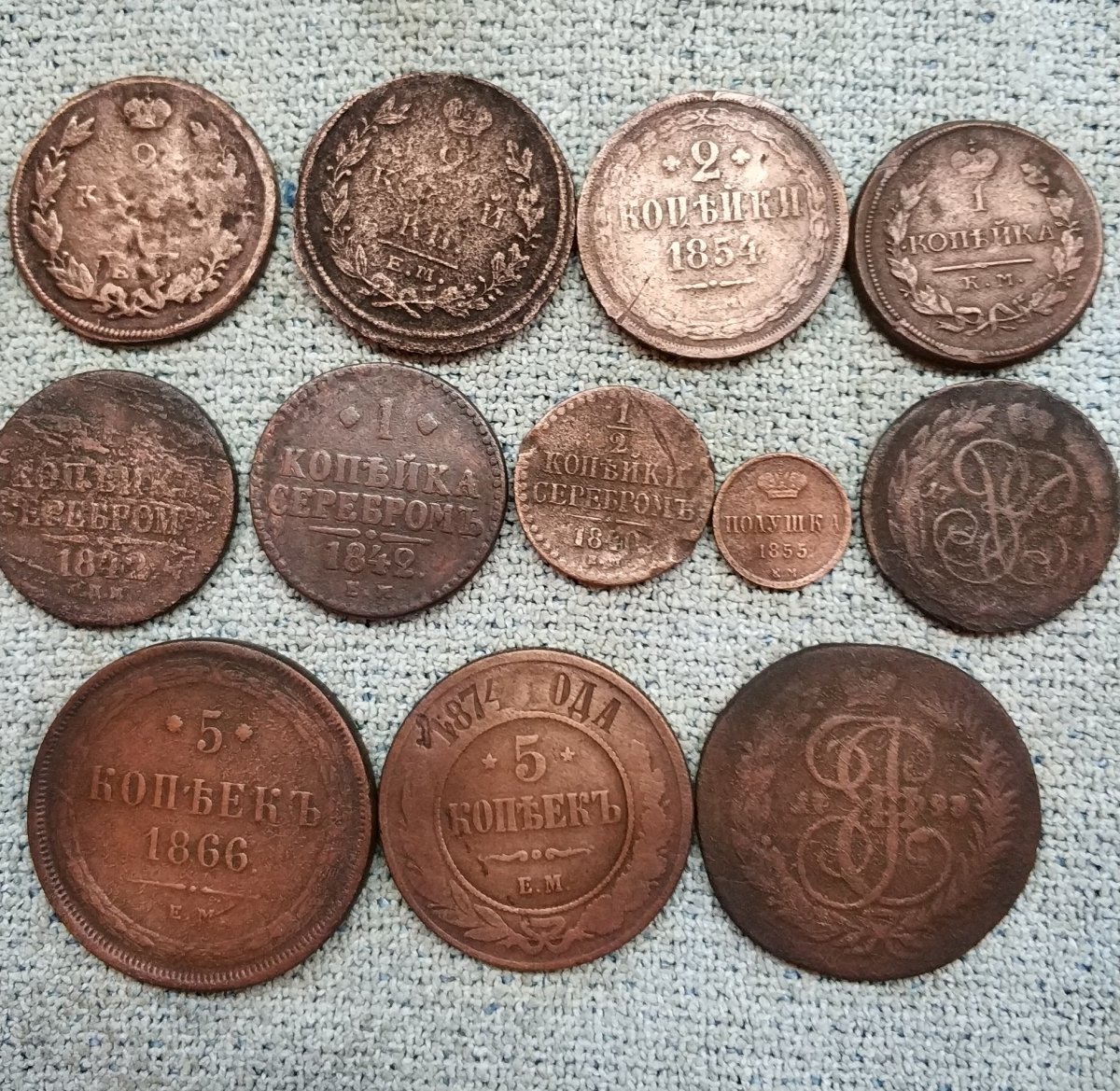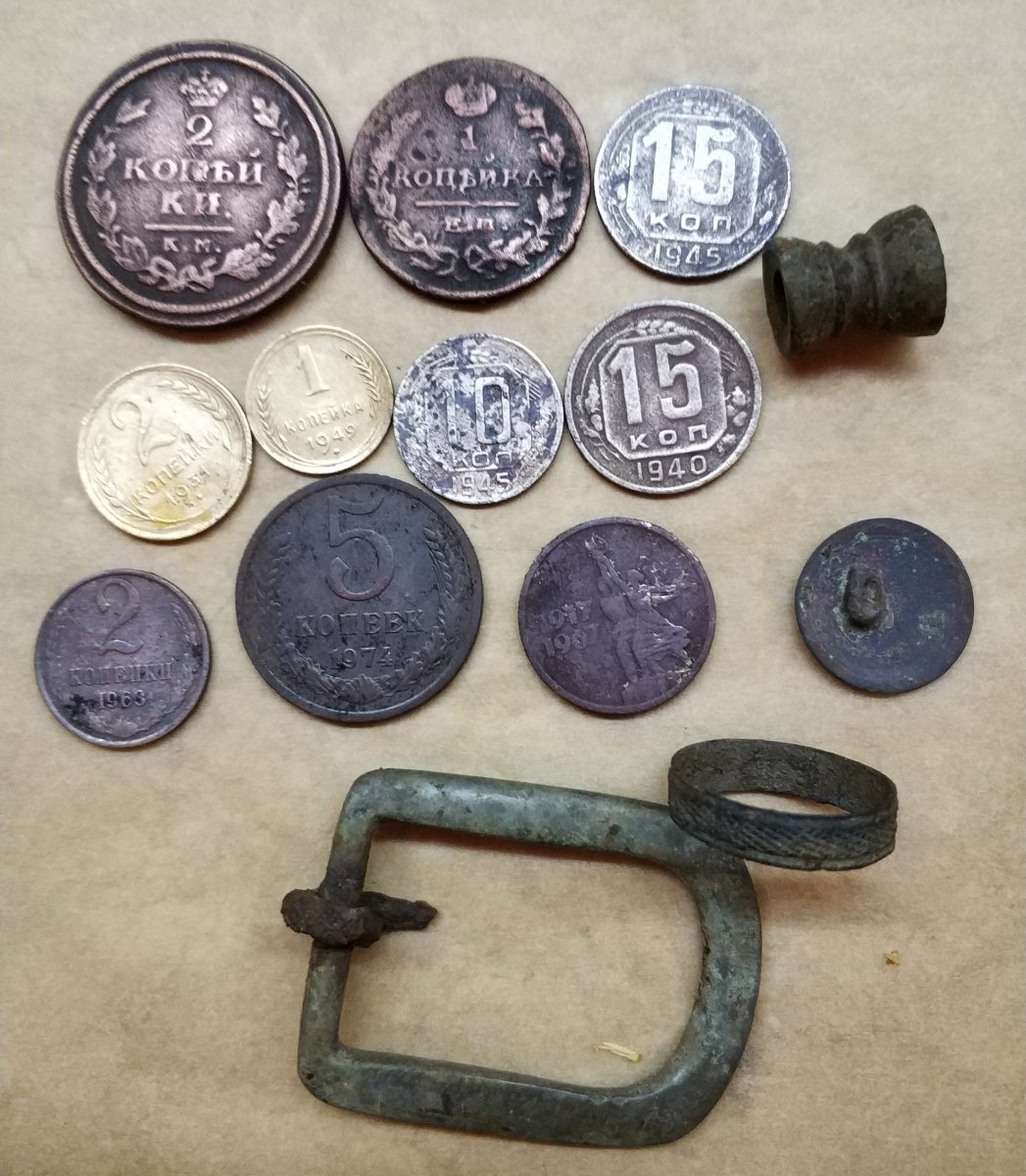 Здравствуйте! Вчера поехали дохаживать одно поле. Такого экстрима у нас еще не было. Грязные были аки свыни По находкам практически ноль. На ногах - комья грязи, катушка в грязи, аж кисть устала к концу дня лишнее кило тягать. Лопата - один большой комок грязи. Ходил и думал, что если б кто заставлял выйти на поле по каким то делам - в лучшем случае послал бы в пешее эротическое путешествие. А как на копе, так и ничего, отходили до темна На обратной дороге поломались посреди полей. Грязные, мокрые ноги, темень, по дороге никто не ездит. Камрад при свете фонарика разбирал движок и ремонтировал, мы делали вид, что помогали Весело было короче, будет что вспомнить На последних фото - помыл кругляшки с прошлого выезда, оказались еще читаемые картинки.