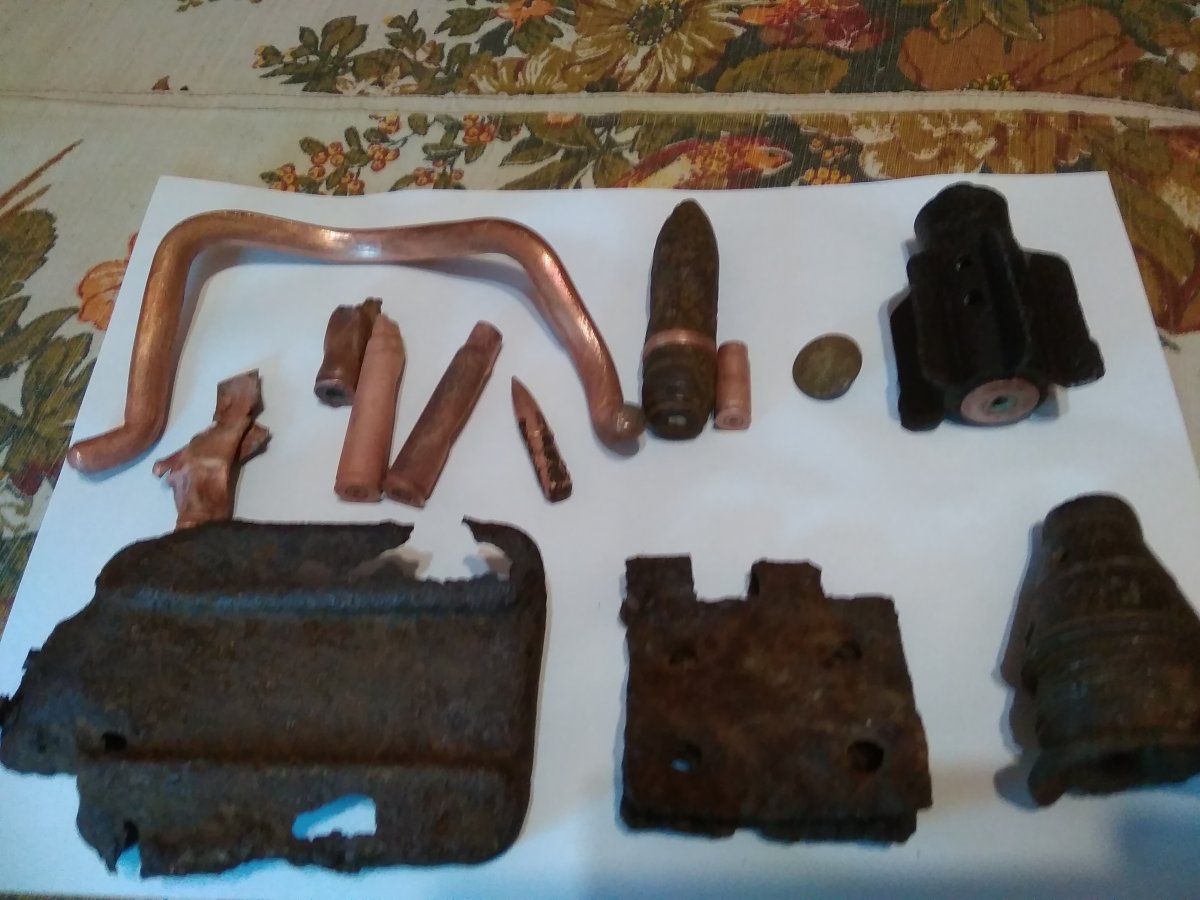 Всем вечер добрый. Погодка конечно радует:) Выехал на одно интересное местечко, летом поднял с десяток монет Павла 1. А щас то место вспаханое... Ммм... К сожалению находок нет... Одна гильза маузер, с пол кармана керамики, и гвоздей кованых штук 5. Видать кто то меня опередил. В конце поля, ручеек ай думаю хоть маленько отмоюсь... Уже возле ручья в густых очень кустах сигнал... Похож на фольгу но не она.... Копнул... И пошли пластины с акб... И пошёл клад :) с собой только хабарница... Снял курточку, туда весь хабар сложил и через все поле тащил на горбу :D с кг 20 точно будет :) может кто то в курсе по чем сейчас свинец? :beer:
