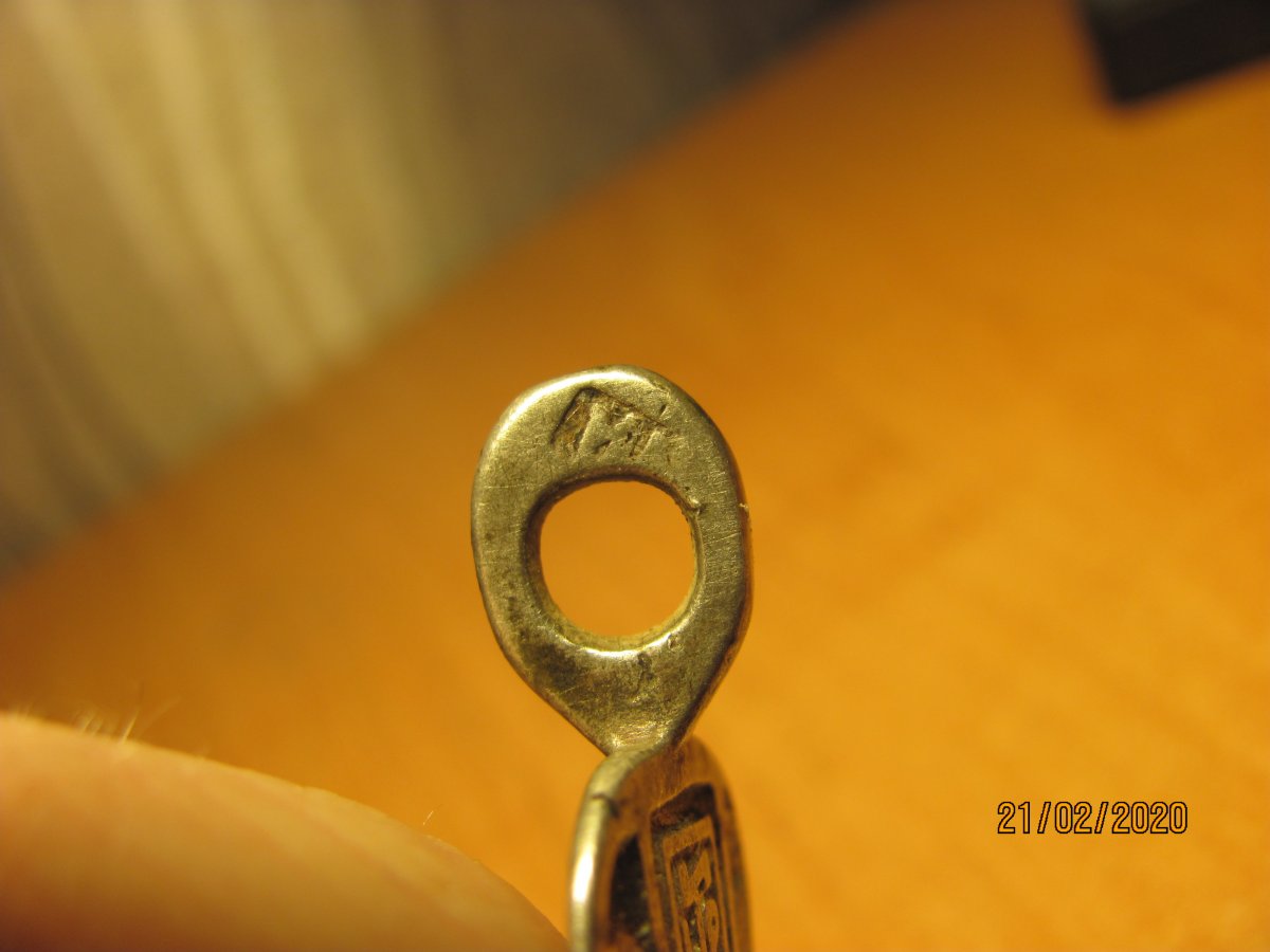 На моем крестике было такое клеймо , что удивило нигде на нем не нашел пробы! Да и патина отличалась от бронзы !