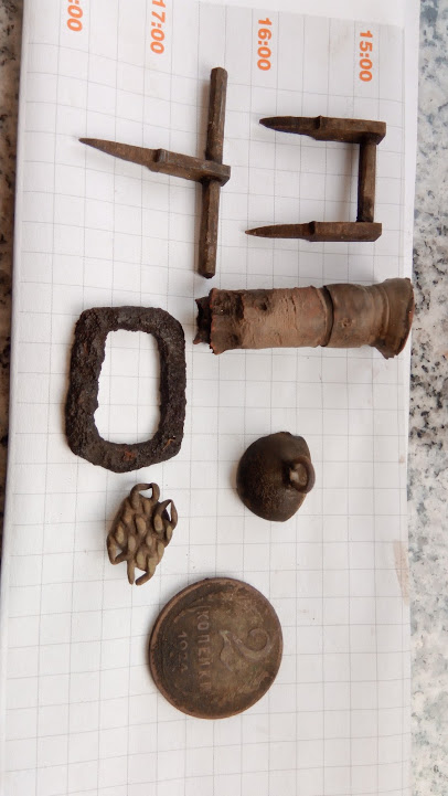 Вітаю! Їздили вчора багато, ходили ще більше, знахідки, якщо так назвати , вільно розмістяться в коробці з під сірників. Мешканці давнього поселення ретельно все поховали, бо знали, що у двадцять першому сторіччі напади з застосуванням лопати стануть частішими, нарили ям, насипали сміття, ще й протитанкову встановили. мінометка з ненаколотим та взриваком, прикопав, протитанкову, про всяк випадок, боком.