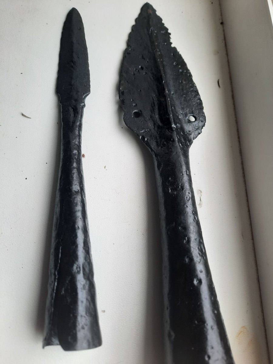 покупаешь едкий натр NaOH делаешь раствор 50 гр на 1 литр воды и оставляешь на 2-3 суток с периодическим доставанием и протиранием железной щеткой, далее механическая чистка гравером, с разными насадками, кипячение в дистиляте со сменой воды (каждые 40 -50 минут) 5 и более часов зависит от количества солей, далее просушка в духовке при темпероатуре 200 градусов тоже около 5-6 часов ну и нанесение ТАНИНА с последующим консервированием микрокристалическим воском "Cosmoloid-80" как то так, я только закончил данные процедуры с копьем, результатами пока доволен.