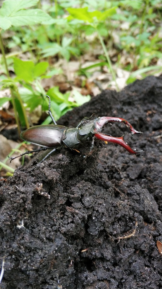 Выкапывая в лесу находку, вывернул с землей жука-рогача. Еще чумной, не проснулся.
