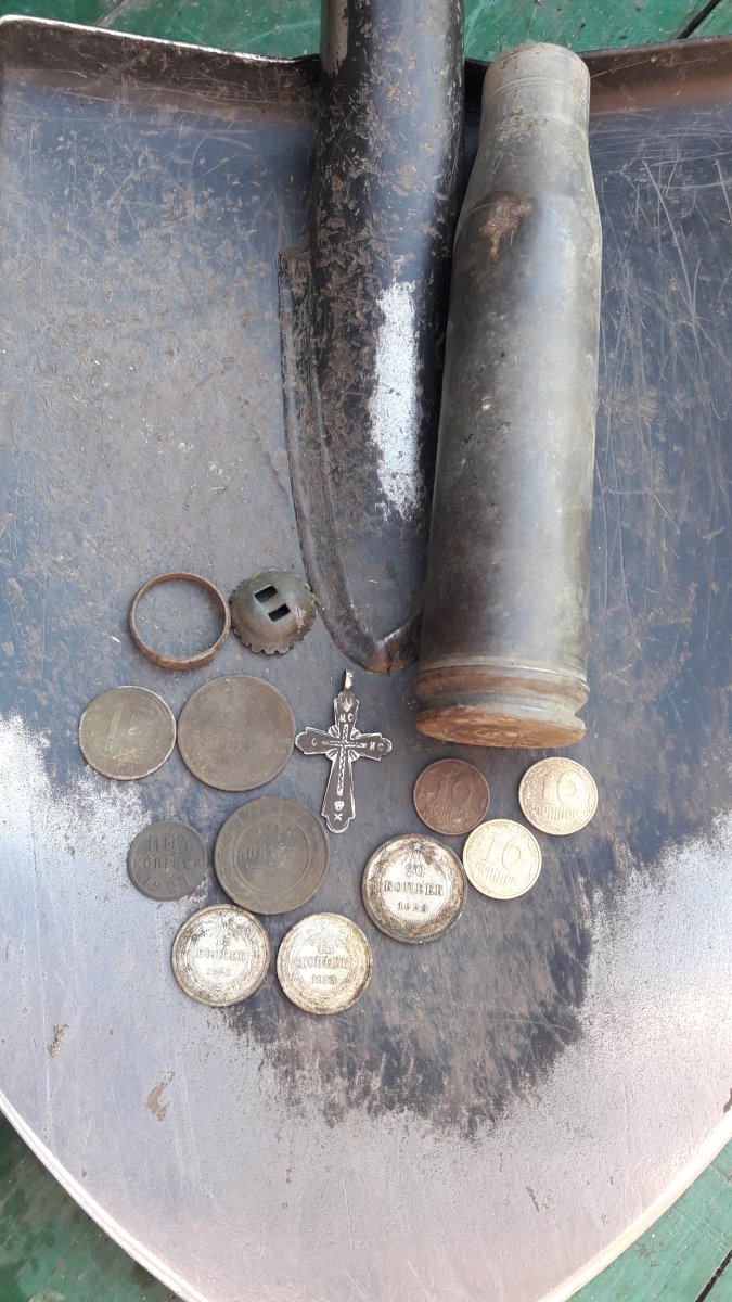 сьездили мы сегодня покопать по войнушке. попались 2 по 2 царицы полей. но в такой жопе.откуда они там оказались хз.ну и такое черти шо на фото. с ув ЭД
