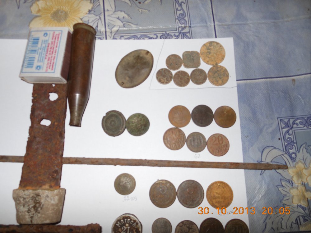 Сегодня немножко покопался возле Дергачей, на немецкой позиции нашел (обведенные ручкой на фото видно) Нидерландские центы-все в одном месте, и все 1942 года. Остальные монеты и часть шашки-нашел ближе к Люботину. Два шомпола -один обломанный, другой целый. Настрел и другой хлам не фоткал.