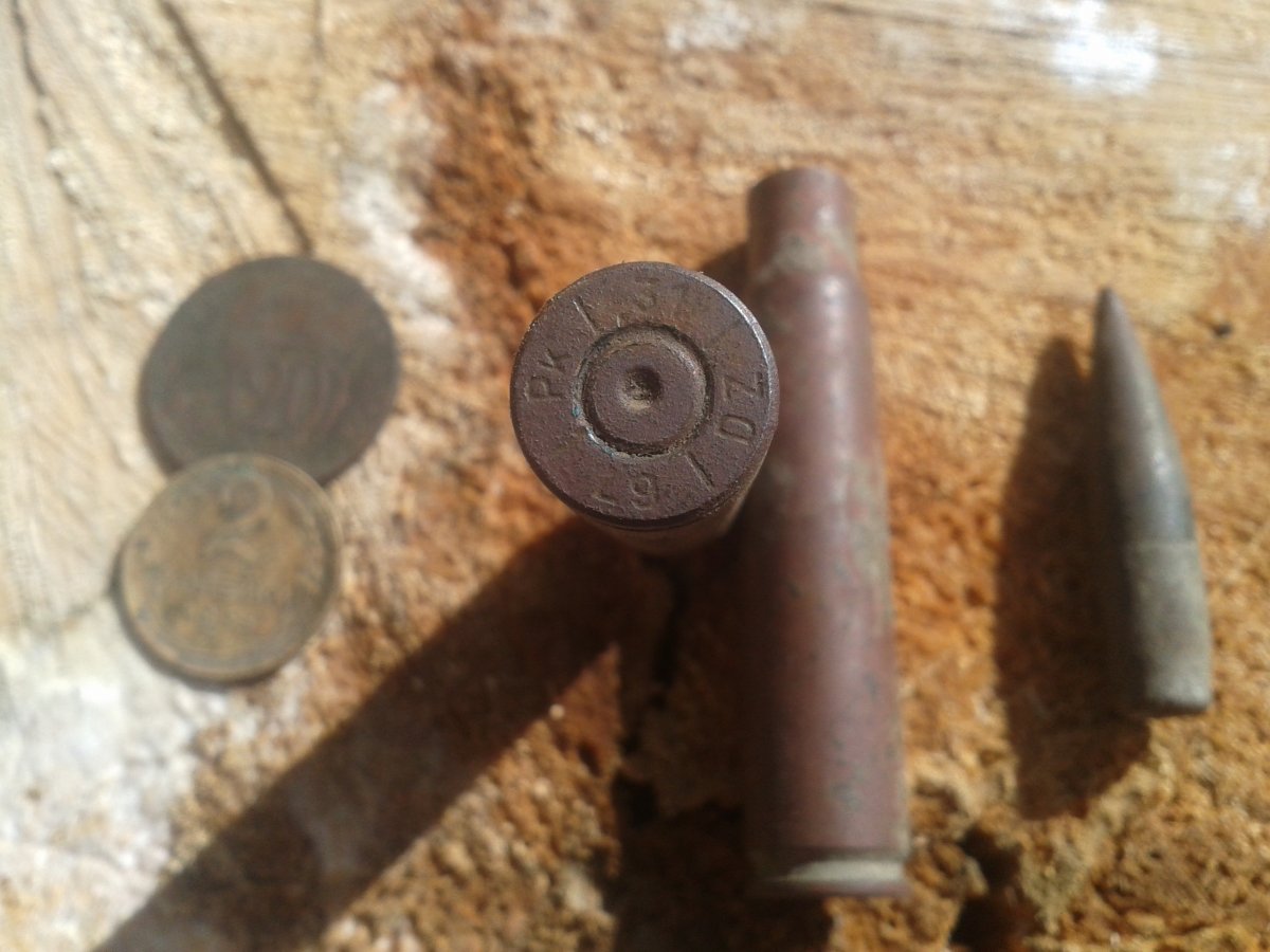 Наткнулся на высотке на наблюдательный пункт с гильзачем по 1931 году .На сколько часто ранние партии попадаются по Харьковской обл.? А ниже на 6 м в котловине скрытая позиция немецкой батареи с таким железом .Такое впечатление как стреляли по минаметной траектории . И по дороге встретился панцеламфибио транспортер .