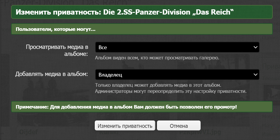 Вітаю! Ви то бачите , бо це Ваш альбом )) Для інших доступу до нього немає ( в налаштуваннях забули відкрити) і вони бачать таке : Змініть в налаштуваннях приватність альбому :