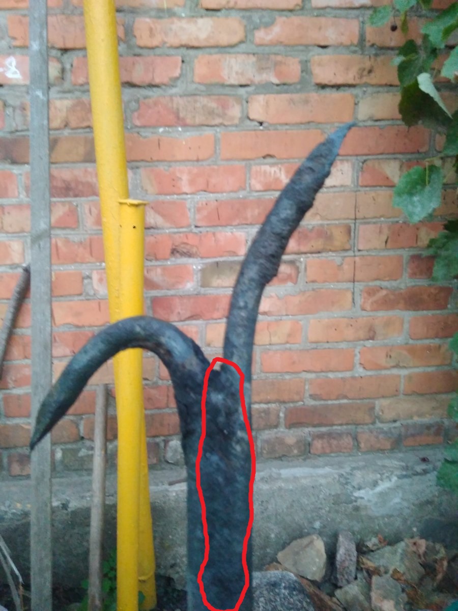 Доброго времени суток, соратники. Хочу поделиться своей находкой и кое что узнать. Вот выкопал багор, нет признаков сварки и прочего, отреставрировать хочу и пущай дома лежит. Но вот может подскажете с этой алюминиевой плюхой? Что этл и откуда она может быть? С задней стороны видны следы, как ее отколупывали чем-то острым, ума не приложу откуда это.