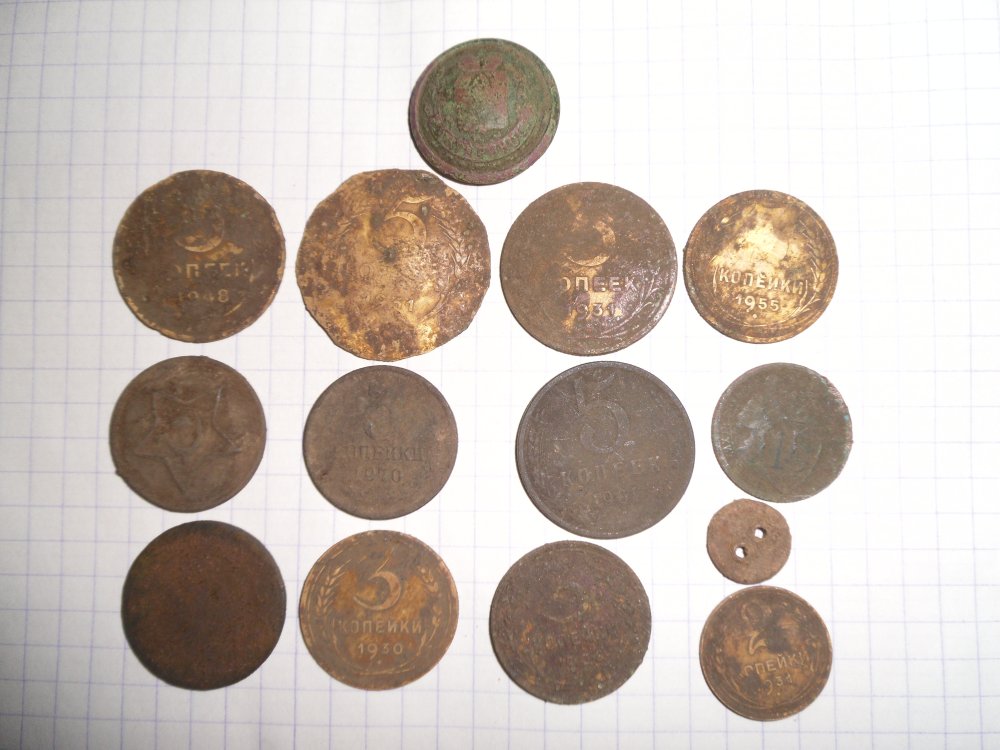 Сегодня вышел в лес прогуляться. Уже неделю как не копал. Ходил старыми выбитыми местами. Находок - ноль. Так ходил час. За это время нашёл только 5 коп 1961 года. Пока в углу леса не нашёл место, куда не дошла нога нашего брата копателя. Поднял пуговицу времён Николая - 2 с надписью "Екатеринослав", 2 копейки 1872 года, правда сильно подуставшую ( да я её неправильной чисткой скорее всего и добил) и 5 коп 1931 года, расклёпанную народными умельцами до размеров рубля.