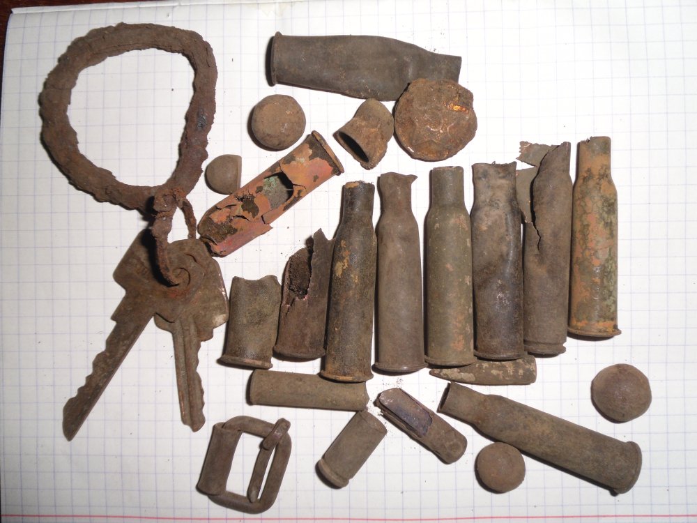 В 40-ка минутах хотьбы от Симферопольской трассы, попалась гильза от арисака 17 года,походу от Латышских стрелков- против Деникина.Весь лес изрыт воронками от Бр 2 или Бр 5.Попалось место саперного подрыва, фотопарат был разряжен, каждый предмет по-одому разу фоткался