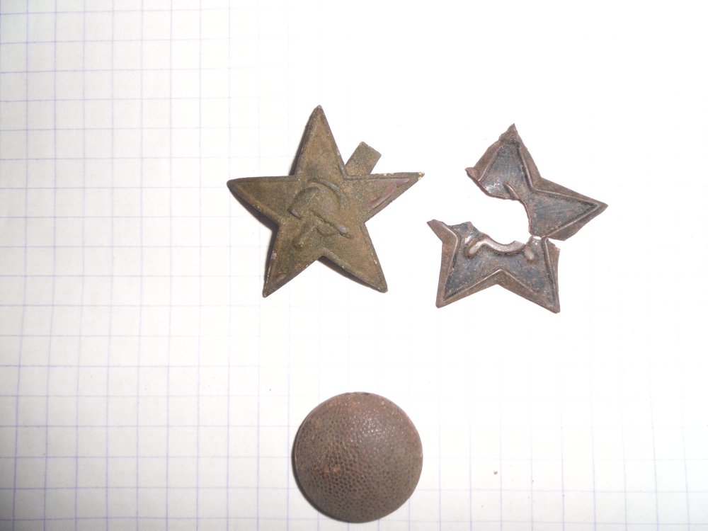 Сегодня продолжил копать на вчерашнем месте. Копал с товарищем ( я думаю он свои находки выложит). Кроме монет порадовала звезда РККА образца 1922 года с острыми лучами. Вторую ( более поздний вариант) я случайно разрубил на 3 части. Две нашёл, а вот третью нет.