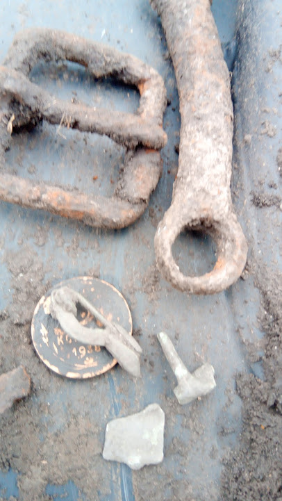 Доброго всем,сегодня продолжил бить место где в прошлый раз были "каки" вермахта,сегодня "каки" были наши и одна из них оказалась интересной-37мм бронебой Маклена переделанный в 37мм бронебой Гочкисса,год 1916. Попалось ложевое кольцо от какого то карамультука с петлёй для ремня,я сначала подумал шо от мурзика а оное не от него,не ведаю от чего