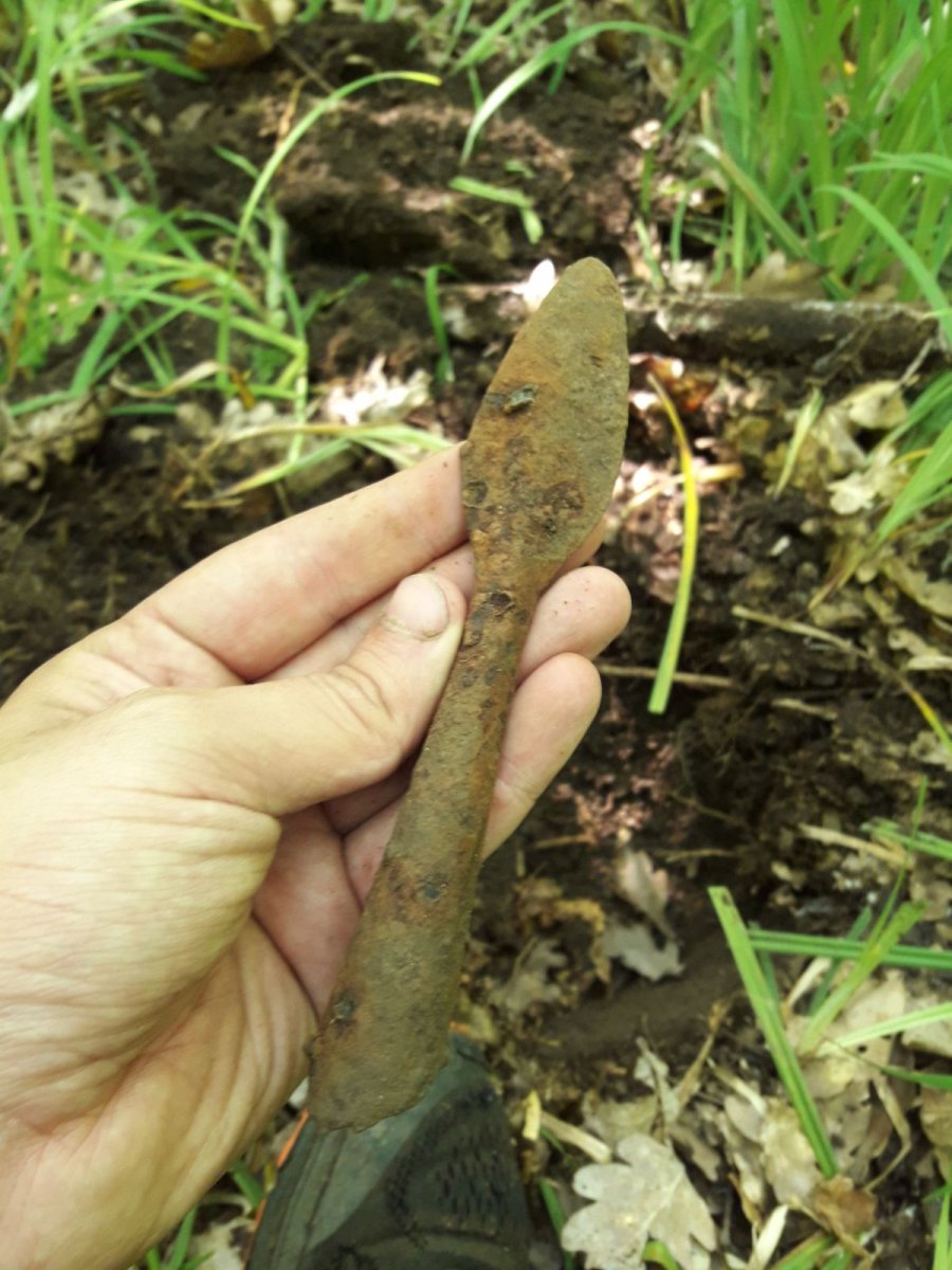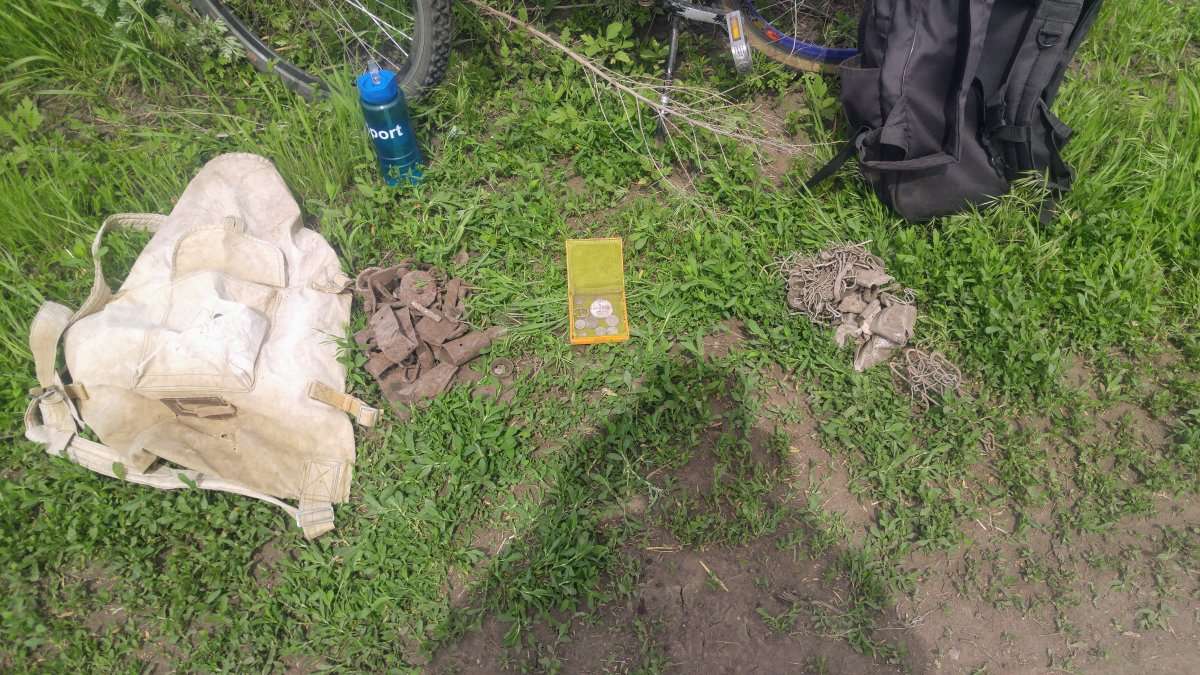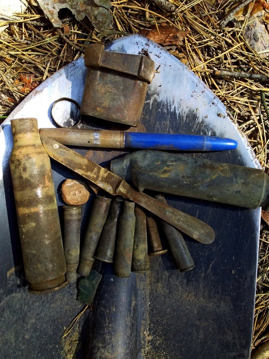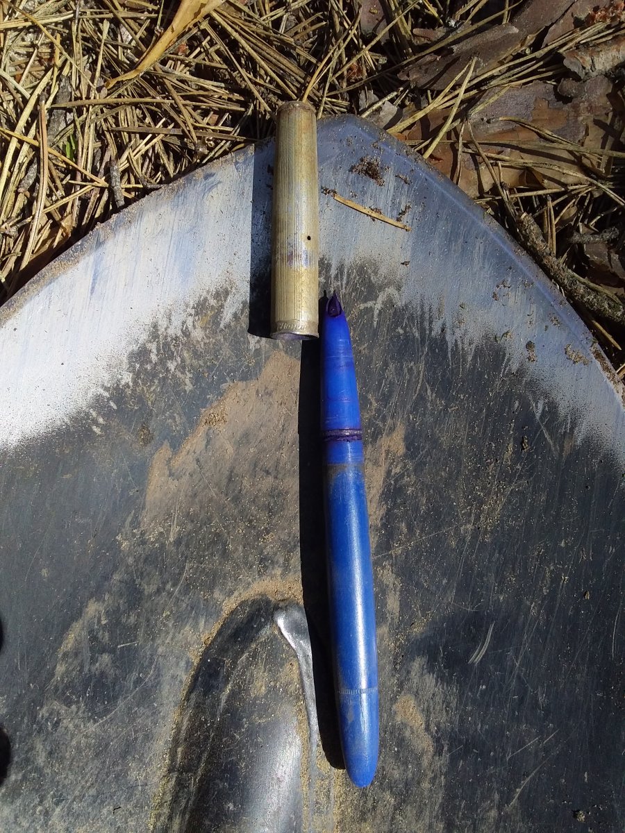 Хай ветка, небольшой результат за сегодня но для наших лесков ещё более менее. Попался полностью латунный ножик возле палаток, недостающая деталь от ножен шашки в моём наборе и перьевая ручка "Ленинград" в сохране. В лесу духота а потом ещё 7 км пёхом вдоль ЖД полотна по щебню и солнцу до цивилизации,в общем оскому на неделю сбил