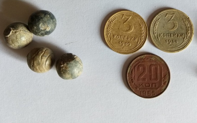 Поскольку летом у меня мертвый сезон, а руки чешутся, решил провести ТО прибора. А как заменил батареи захотелось попипкать. Решил попробовать там где в прошлый раз визуально нашел пятак на краю палисадника. Сигнал оказался как раз на краю асфальта. Поковырял лопатой и вытащил залипуху. Правда полежав в кармане она реасцепилась. Судя по размерам дореформа 5 и 3 коп.