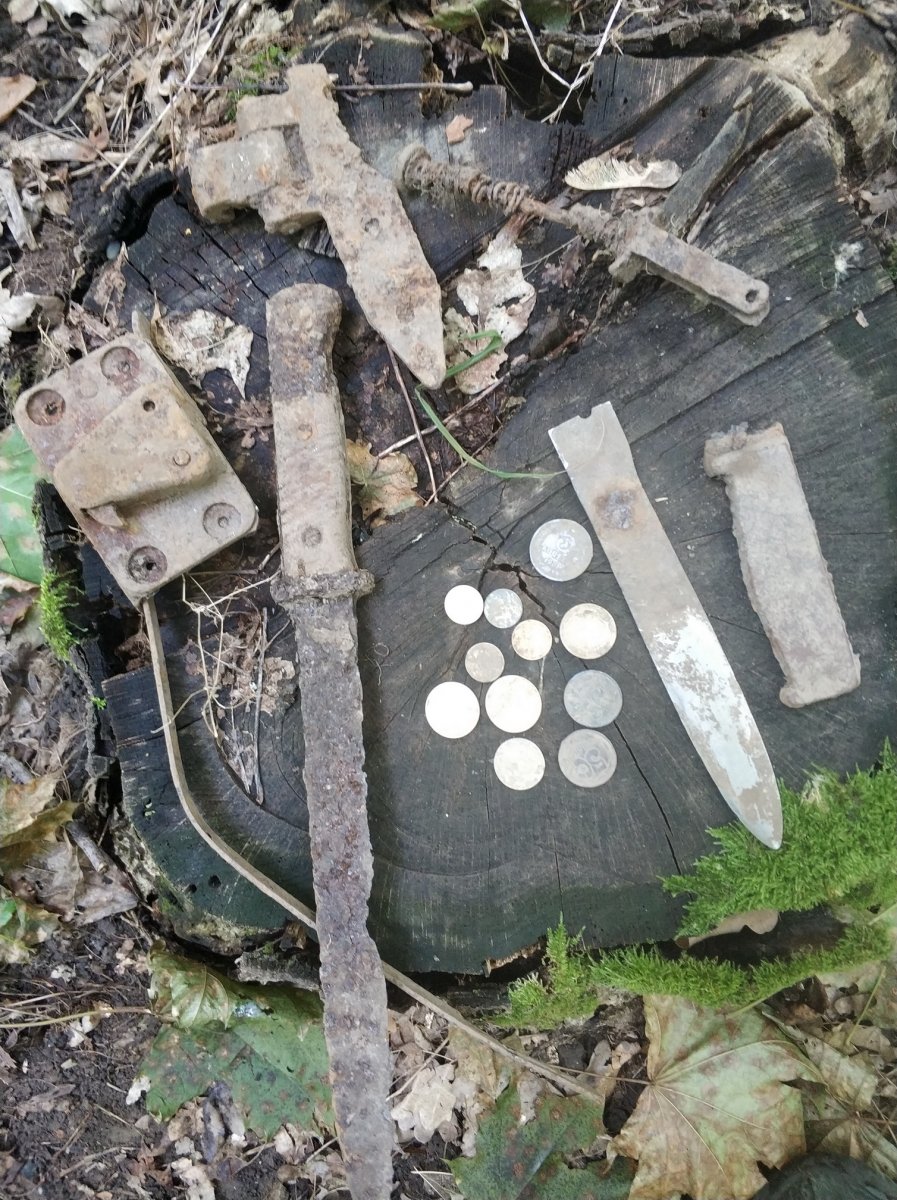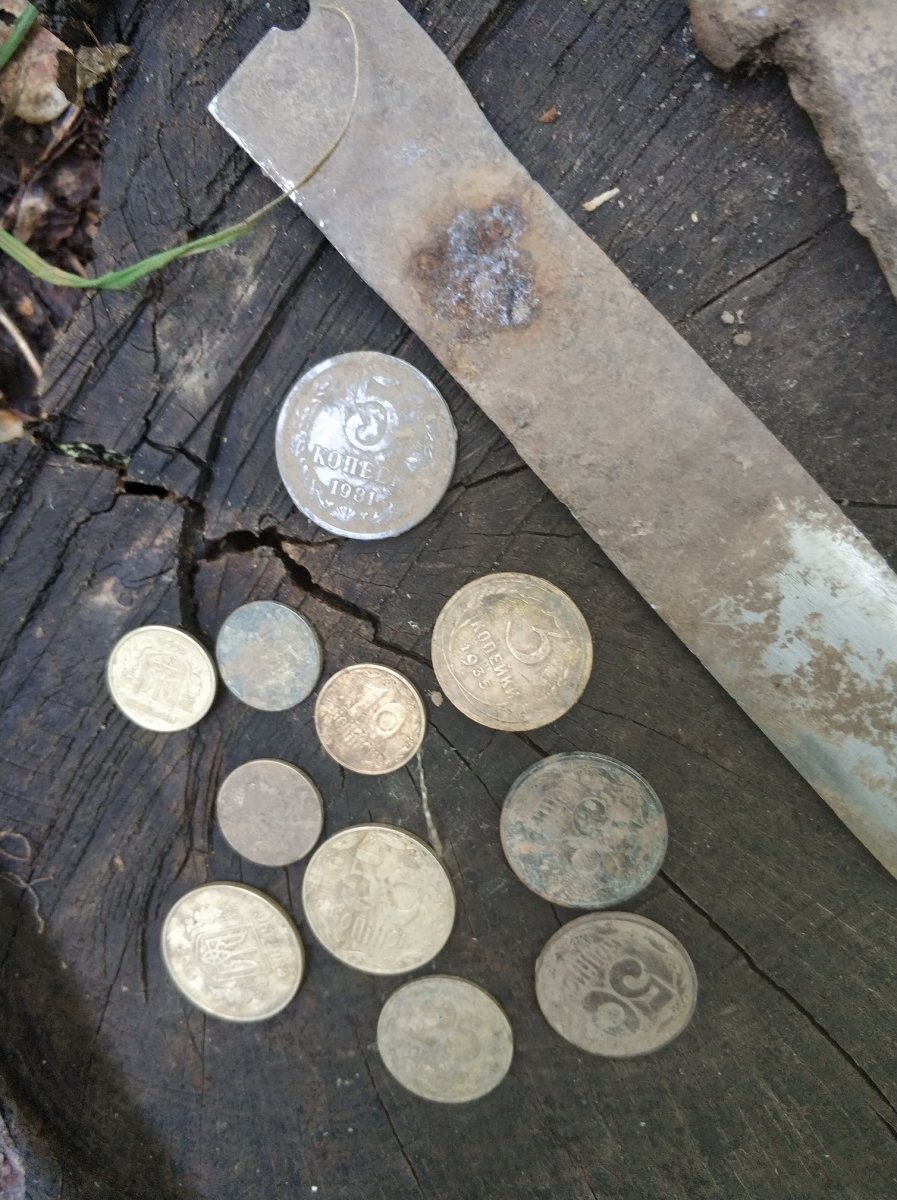 Здравствуйте! Сегодня убедился в правоте слов своего наставника-камрада Не далее как вчера он сказал - нужно быть точным в своих желаниях. Каждый раз отправляясь в лес, я просил дедушку немецкий штык-нож. Ну вот хочу я его! Сегодня деду настопи надоедо слушать мое нытье и он подкинул таки его. В этом месте только я был стопятьсот раз, не считая остальных. Ну а то, что он в хлам - так нужно было уточнять - мол хочу чердачный сохран! А так все честно: штык просил - получи. Монеты - все ходячка и тоже с этого места, какая то чудосия.