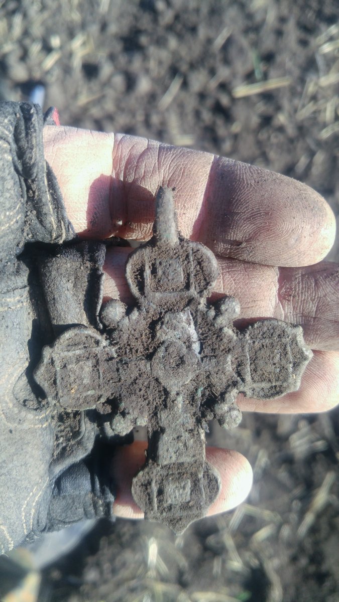 Доброго дня , Камради ! Давно не бачилися ) Трохи не по місцевій темі , а з-під Варшави... (Як що розцінете за флуд - видаліть пост. Наперед перепрошую ) Отже. Вчора трохи покопав ... Ввечері... В темряві... Сам... Якась медалька . Хрест з білого металу зі вставочкою з якоїсь деревини. Викопав в темряві якогось цвяха, він не поміщався в хабарницю , зламав його... А потім при розгляді зрозумів, шо зламав нак ((( Миру всім нам ! З повагою, СірожаЗолото