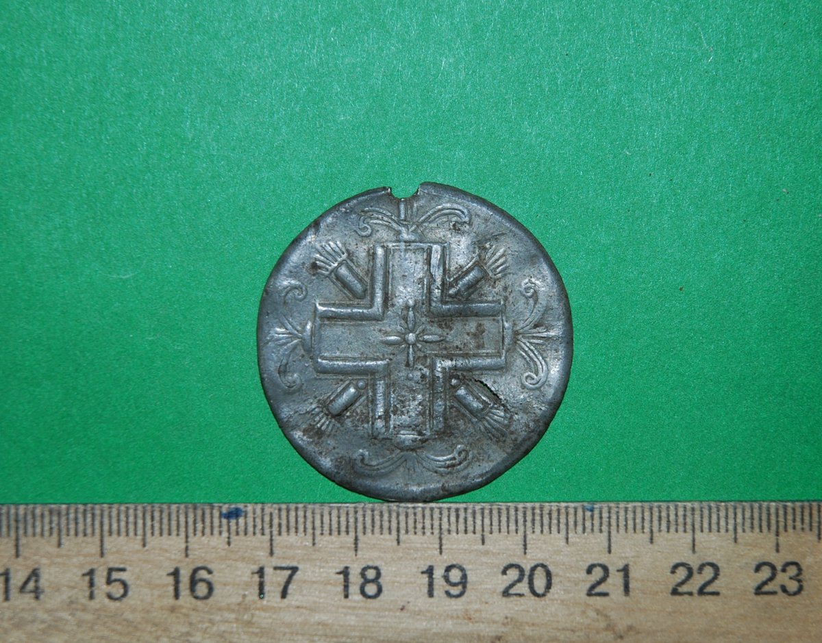 Приветствую. Мы тоже с друзьями прокатились в лес. Железа крупного нет от слова вообще. Самое крупное железо была подкова. А так гильзы пояски и осколки, ещё хватает. У меня из интересного попался дукач или жетон. А у товарища 20 копеек 1924 года в хорошем состоянии.