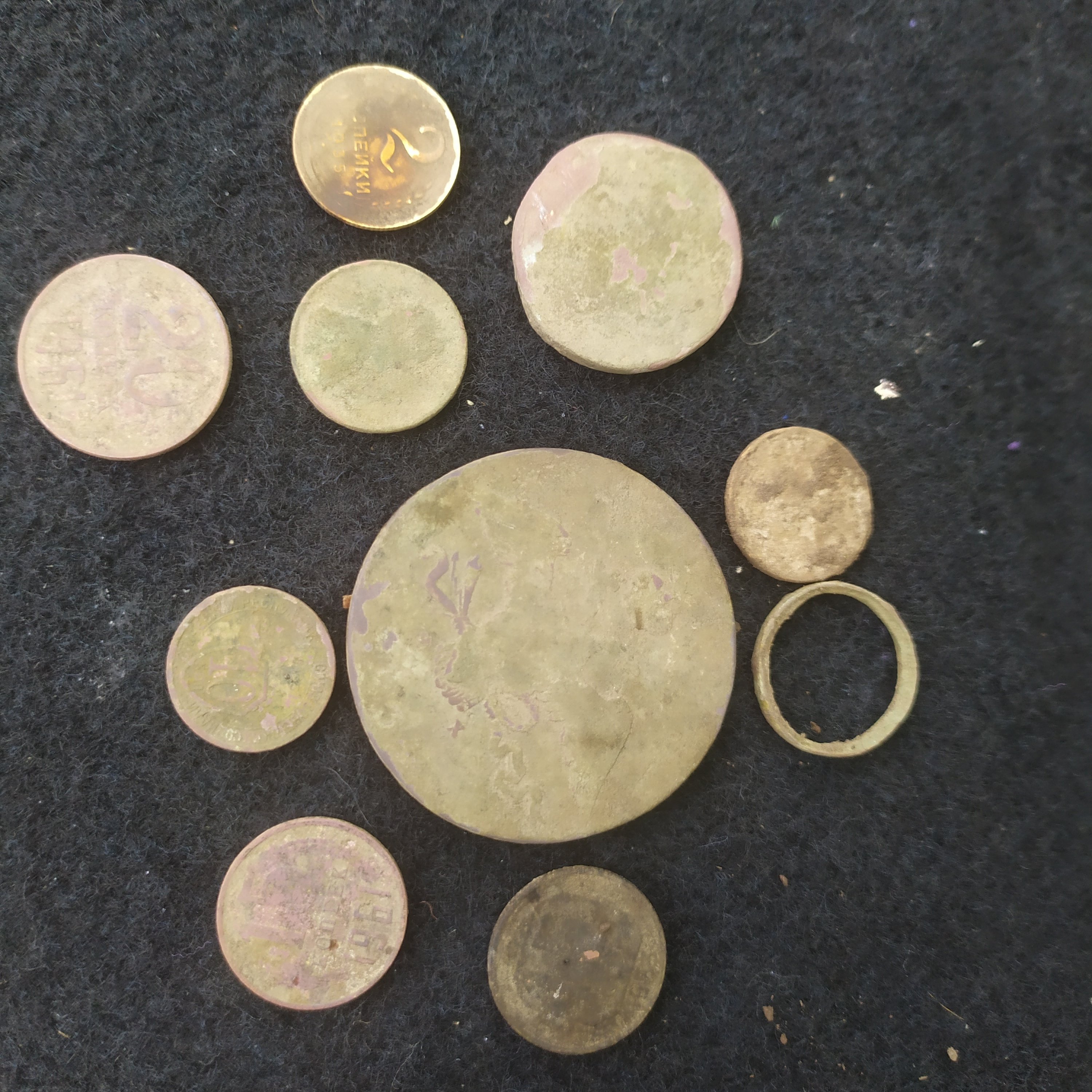 Доброго вечора, панове. З камрадом Slavon12M, нарешті відкрили весняний коп. Трохи побродили по лісу намагалися знайти корчму небиту))) Але нажаль, не сьогодні. Щось назбирали: перша знахідка була обнадійлива 10 коп 1834 р масон), а згодом було не дуже. Загальний рахунок ще 10 коп 1932, 15 коп 1953 , та якийсь " царський" мідний кружалик. Під фінал додали ще один цент USA ( якого року хз) де він узявся у тих краях під землею ,одному Богу відомо. Коп завершений, монети пішли приймати ванну з господарського мила. Всім гарних знахідок