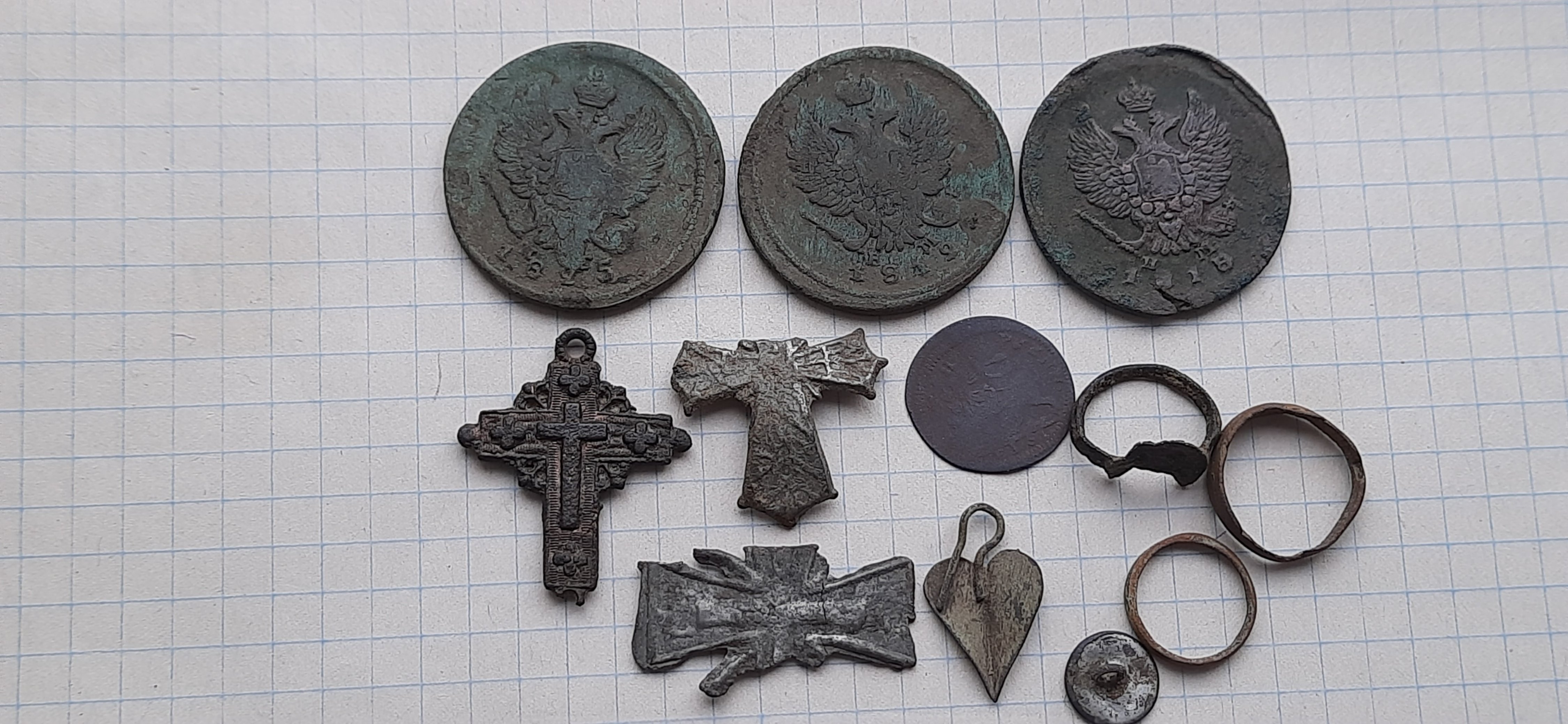 Порадовала нем. монетка в хорошем сохране, крестик жаль тоже побывал под плугом(