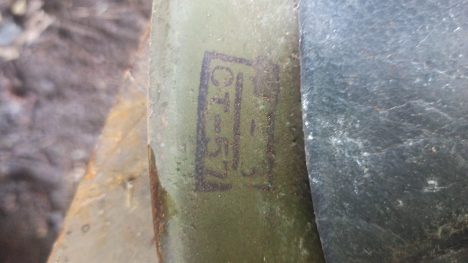 вот еще один шлем с интересной маркировкой, который был найден там же невдалеке. Похоже "их" комплектовали..всем, что было на складах с 40-х годов