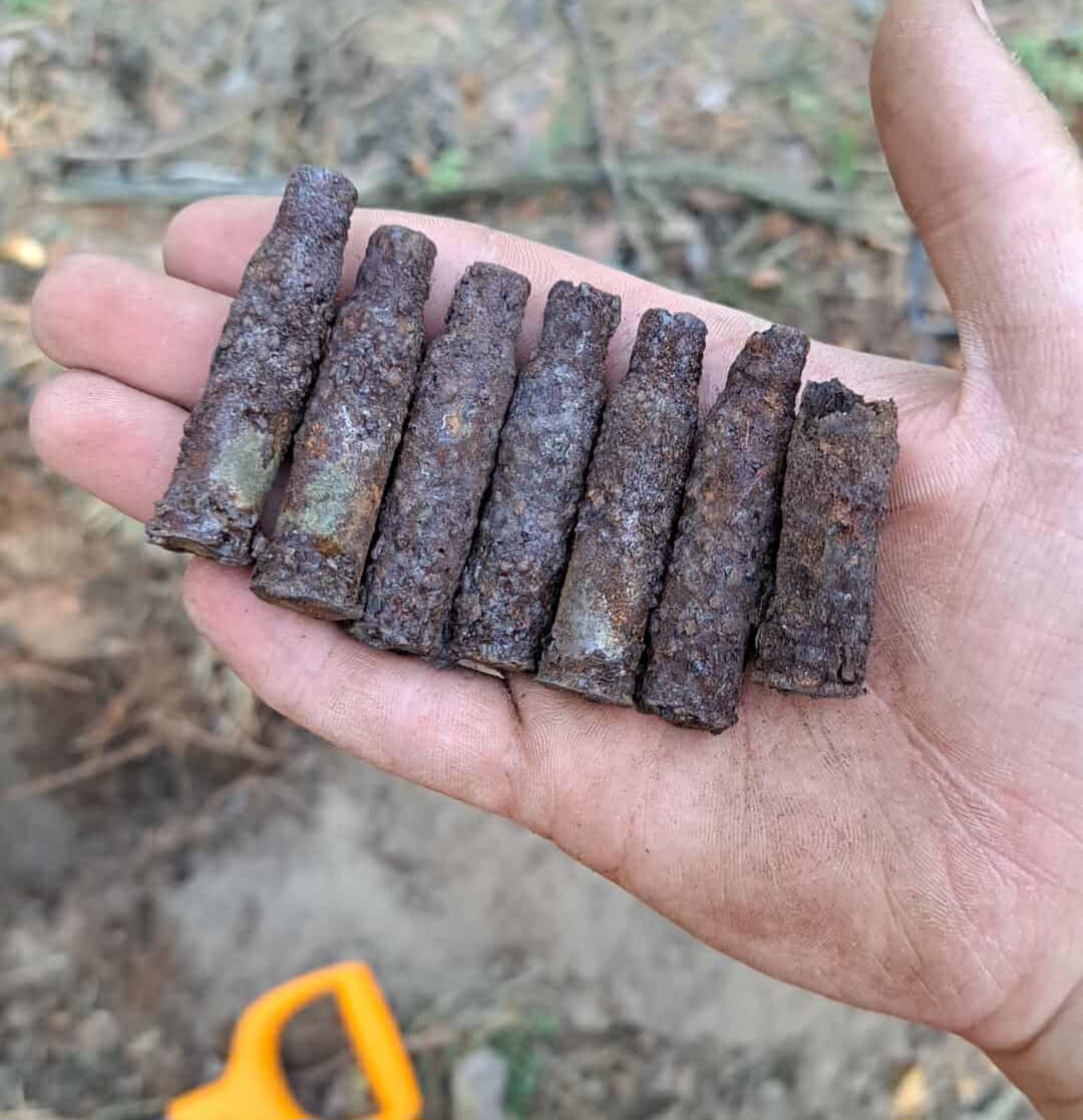 Сьогодні, після того як встиг похворати, відсвяткувати народження та усе інше, усе таки виліз покопатись, бо вже прям хотілось неможу)) Спочатку першим було поле, про котре в минулий раз писав так, ходив по іншим місцям - ніц окрім чермету, але повернувся до того місця, де в минулий раз копійка вистрибнула, і мабуть через хвилин 10 ще одна P.s.Вже трохи в милі повалялась, какалік трохи Потім помітив купу шматків кераміки того ж періоду, але ходив-ходив - взагалі пусто було, але й рано згортатися Вирішив спробувати залізти в ліс поряд, в котрому до цього не був - можно було і не лізти На вигляд, звісно, симпатичний та давав надію на те що не заросший, але там джунглі якісь, ще й трухлятина, ну його, якщо чесно, ноги ледве виніс, ну зато похвоткався трохи)) Останнім ділом заліз в ліс, в котрому й до цього був раніше, і на цей раз трохи порадував Було сигналів мало взагалі, вирішив копати й будь-які чурметні копати, і вибився гільзач від мосіна. Думаю непогано, хотів закидувати, а тут сигнал не пропав, й так пару разів, доки я не почав крутитись на місці, перекопавши 2х2 десь, і нарив цілий боєкомплект, прикро, що, гнилуватий вже, да і ним обійшлось тільки. Пішов далі трохи, і вискочила одинока радянська монетка, да і все, щось ходив і пусто було, і темнішало, зібрав лахи та додому покрутив. Тексту більше ніж картинок, не пошкодував