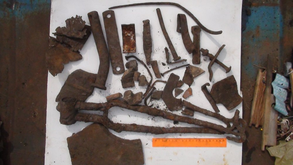 Если вы о той что возле Уплатненского пруда, то я один день там посвятил. Летом от посевов была свободна только нижняя часть, только там и походил. Много дореволюционных бытовых железок. Колышки, молотки, вилы, цепи и т.п. Ценного не нашел ничего. Но у меня ACE-250 поэтому черные сигналы забивали все. Но я ездил сезон на разведку, и отмечал места для последующих поездок с хорошим прибором. К весне собираюсь E-Trac купить. Гаражовка такой отметкой помечена, как и недалеко расположенная Криштоповка. Часть найденного в Гаражовке хлама.