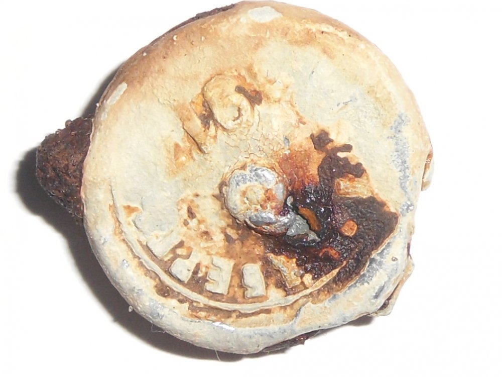 Вот сегодня наловил, ещё не чистил. Находки конечно не очень, но хоть так, чем вообще никак. Попались 3 свинцовые пломбы да пуговка немецкая в хорошем сохране.