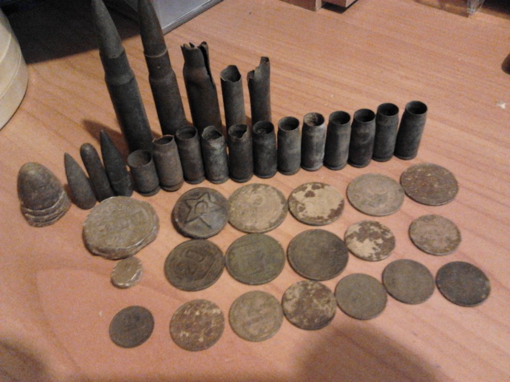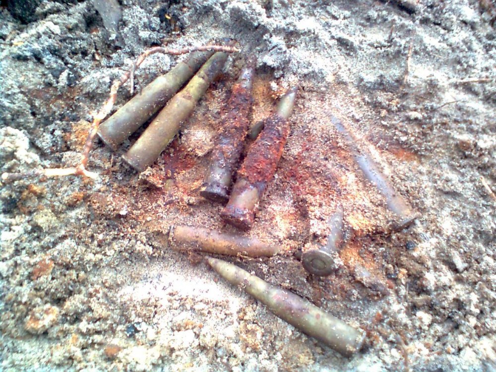 такой вот мини-клад нашёл сегодня под ними ещё десяток,плюс к этому бракованный и видимо брошенный ТТшонок с запрессованой по самое нехочу пулей и пара маузеров с умершими пулями чё-то они в песке совсем не сохраняются по сравнению с чернозёмом,завтра будем чистить и сверлить,из гильз несколько штук МГшного настрела,мосинские и манлихер-каркано