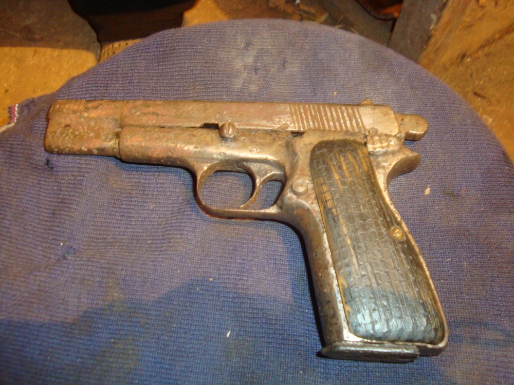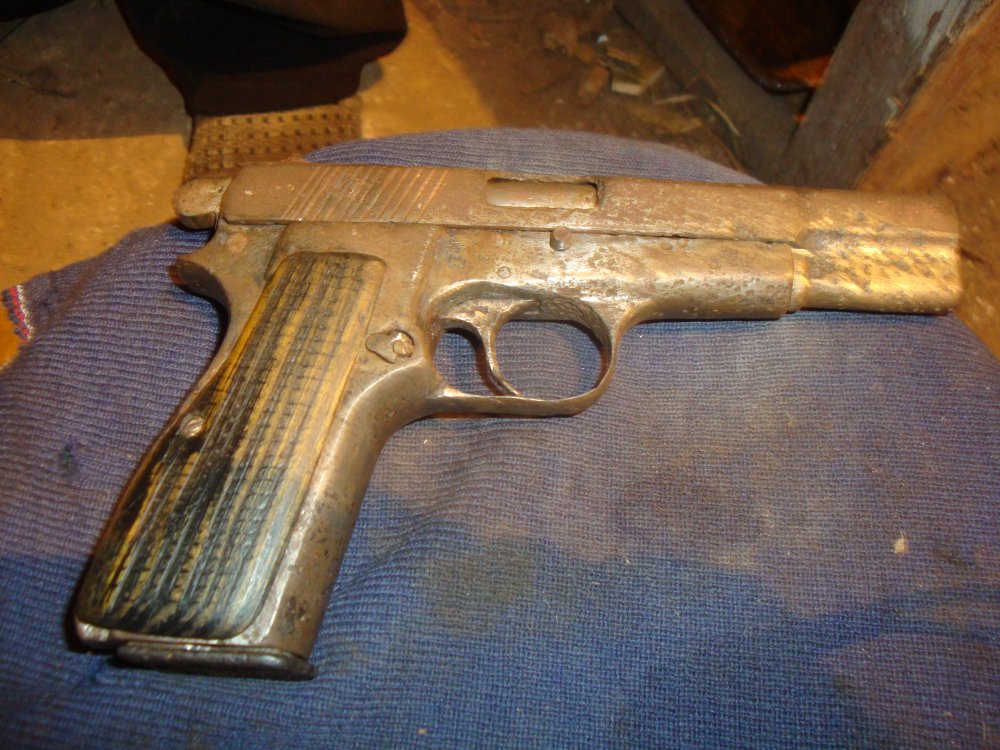 Тоже есть такая история. Знакомый мужик, еще в детстве будучи в подмастерье, помогал в разборке дома в окрестностях Чугуева. Когда разбирали чердак, на землю выпал промасленный сверток, в котором оказался Браунинг ХП. Пока он радовался находке, завистливые коллеги сообщили куда надо. Тут же прибыли эцилопы и настоятельно порекомендовали отдать по-хорошему. Добровольную сдачу естественно никто не оформлял...