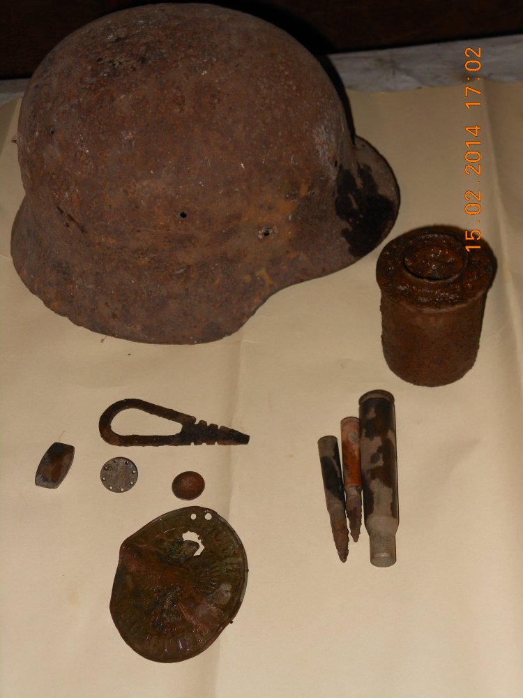 Ходил сегодня в лес с камрадом. В общем копаемо (кое-где попадаеться мерзлая, но в основном норм). Нашли схрон наших и немецких гвоздей. Никто не подскажет, что за снаряд (длина 10-15 см, диаметр - примерно 20-30 мм)