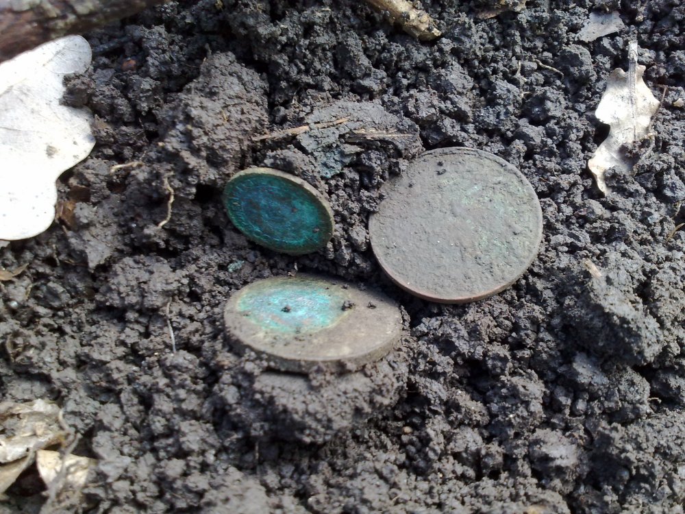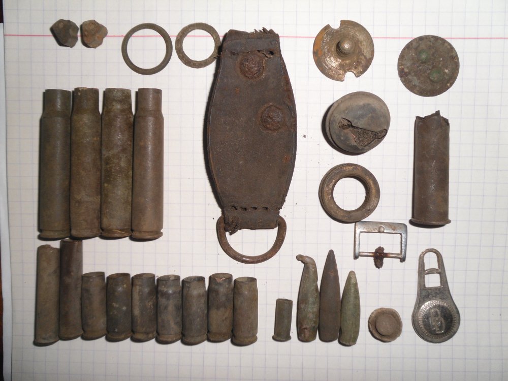 Находки с того же места: немного монет, жетон на метро Санкт Петербург, немного пуговиц ( пару царских, одна даже редкая), гильзы пули, тренчик от старой портупеи, какой то латунный шар с прорезями