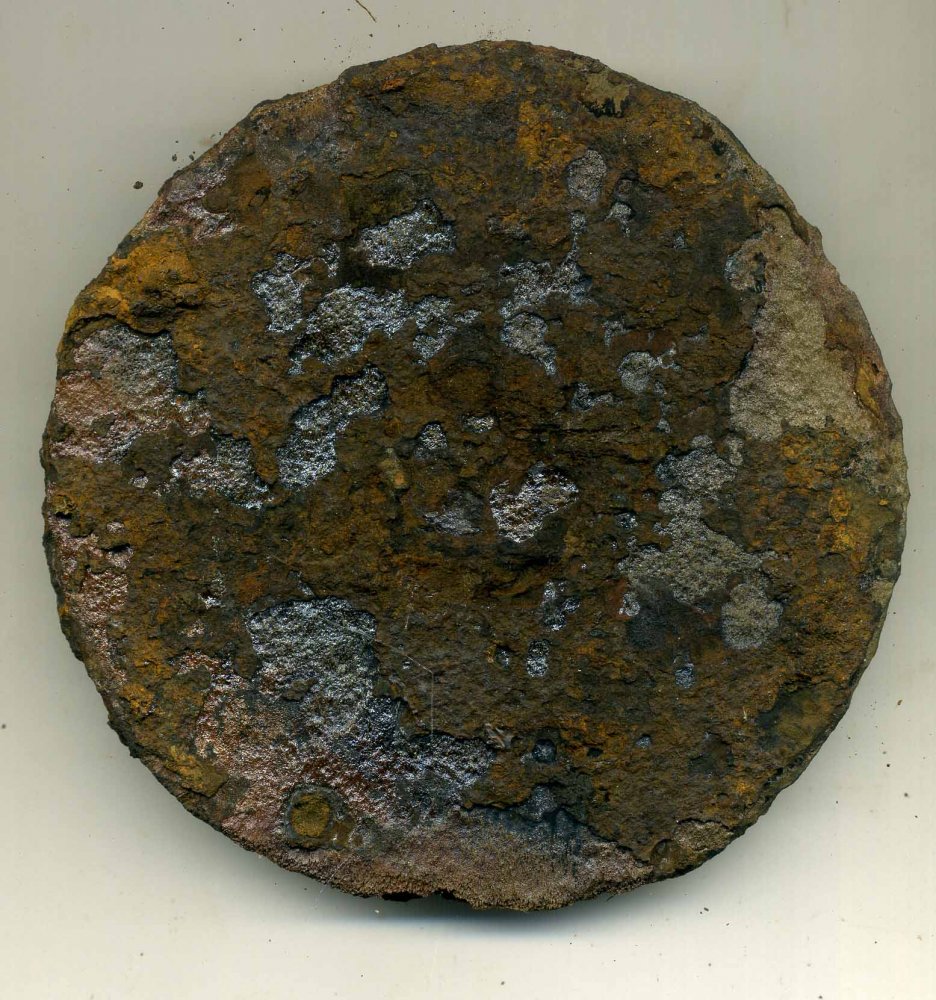 К сожалению линейки нет. Я там на одном фото краешек спичечного коробка приложил. Сантиметров десять в диаметре, толщиной сантиметра три. Центральная часть где похоже на гайку, выступает на сантиметр. Я срочную в минометной батарее служил 120мм. На них явно не похоже.