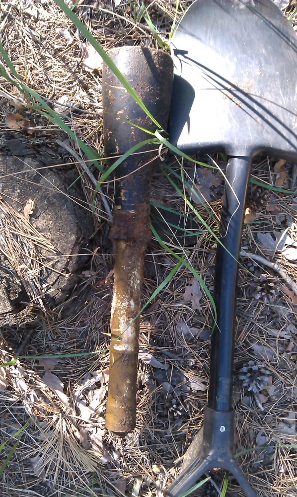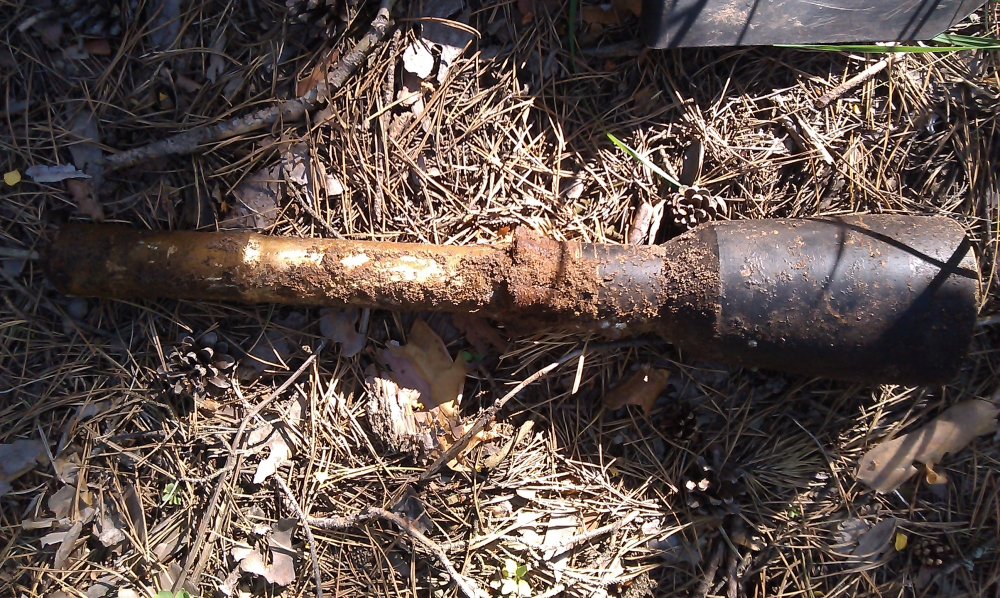 в субботу выбрался по-копать, в одном месте довелось поднять царскую пуговицу и мосинскую гильзу (так же царских времён) но комары меня прогнали, пришлось выбираться на ветерок ( сквознячок) ближе к речке где в 1943 немцы держали оборону по Донцу, встретил компанию из пятерых камрадов ( если читаете Вам привет) поднял пару гильз с маузера и ВОП, я так понимаю фаустпатрон, может ошибаюсь, поправьте.