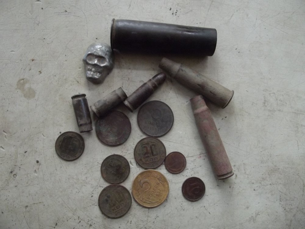 в понедельник погулял полтора часика, там очень много пробок. черепушка вылита из свинца - явно ктото выливал, нашел место (далеко от найденного черепа) где явно плавили аккумуляторный свинец патрон с битым капселем, осечка))) вокруг много сигналов от гизльз - выкопал парочку и дальше пошел
