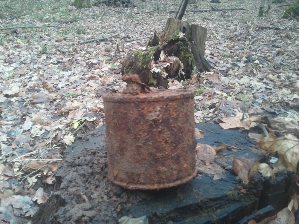 находил тоже! только на моей сверху что то вроде чеки было, когда копал думал банка тушенки когда отрыл комрады сказали, что сам в тушенку мог превратится(((