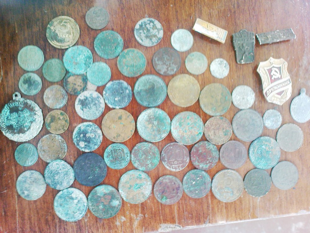 Сегодня прозвонил заброшеный дом(барак),добычей стали монеты,начиная с 23 по 87года,жаль что много в плачевном состоянии,значки,гильзы и планки с маузера,серебряная ладанка.