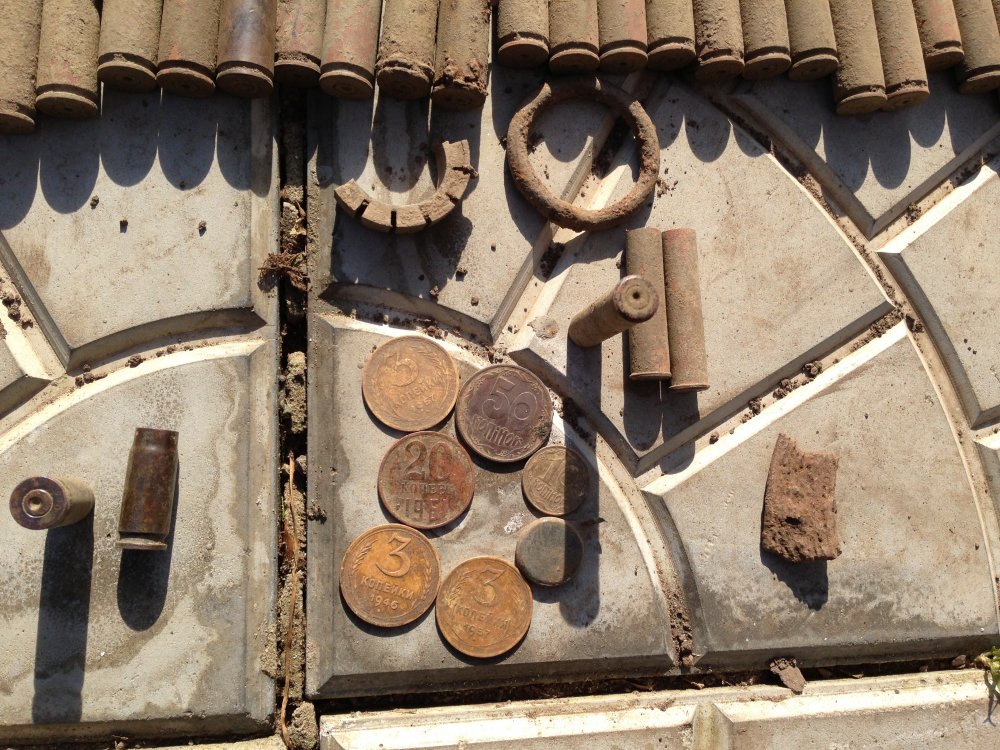 ох ёёёё,в сторону чего хоть ходили скажи,а то я решил пробить старое место от канцедаловского моста до чугунки(лес)-и почти ничего,монетки в одной кучке,трёхкопеечные 1928 и 1931 годов и одна десятикопеечная 1931 года,видно кто-то крепко навернулся до войны на кучугуре,жменя ППШовских гильз и пара маузёровских и всё,ах да ещё четыре клеща почивших в пламени зажигалки,пришлось топать на гансовский опорный пункт за чугунным мостом что бы хоть на немеческом настреле душу отвести