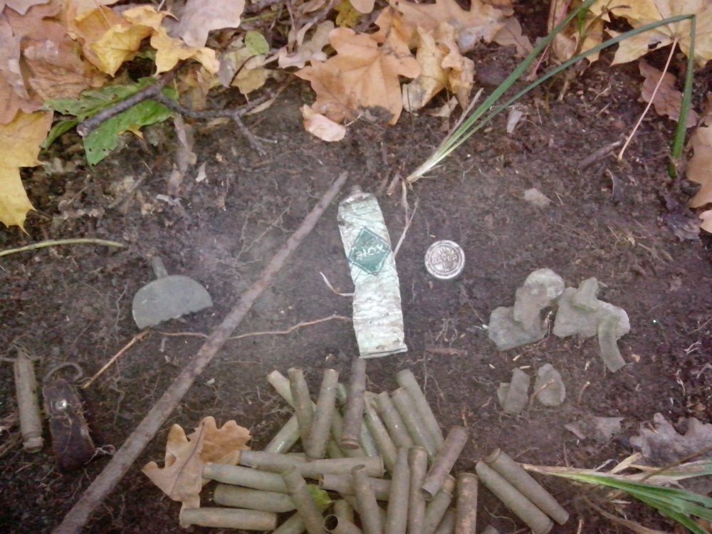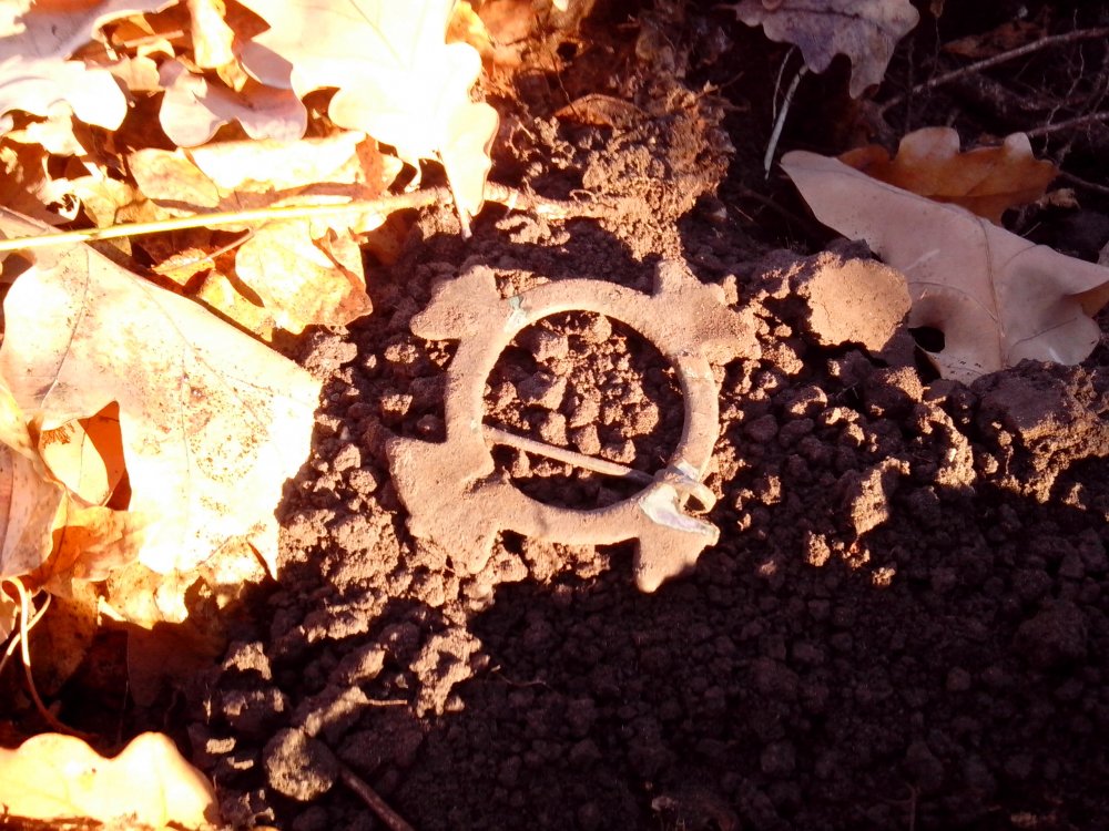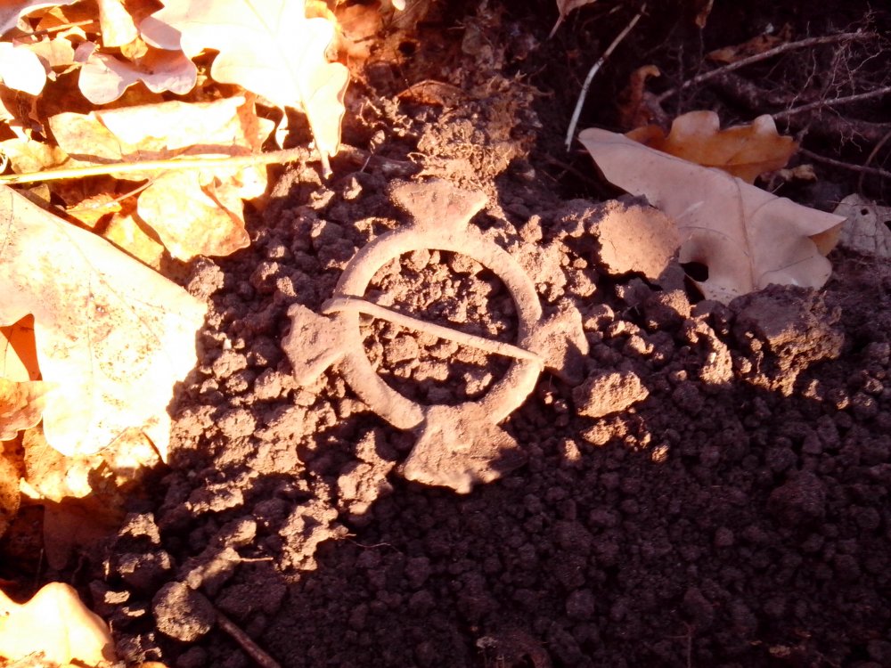 Сегодня тоже съездили в лес,на коп и за грибами,но к сожелению грибов небыло вообще и листвы нападало сантиметров 10. И самую главную находку дня-поднял комрад.