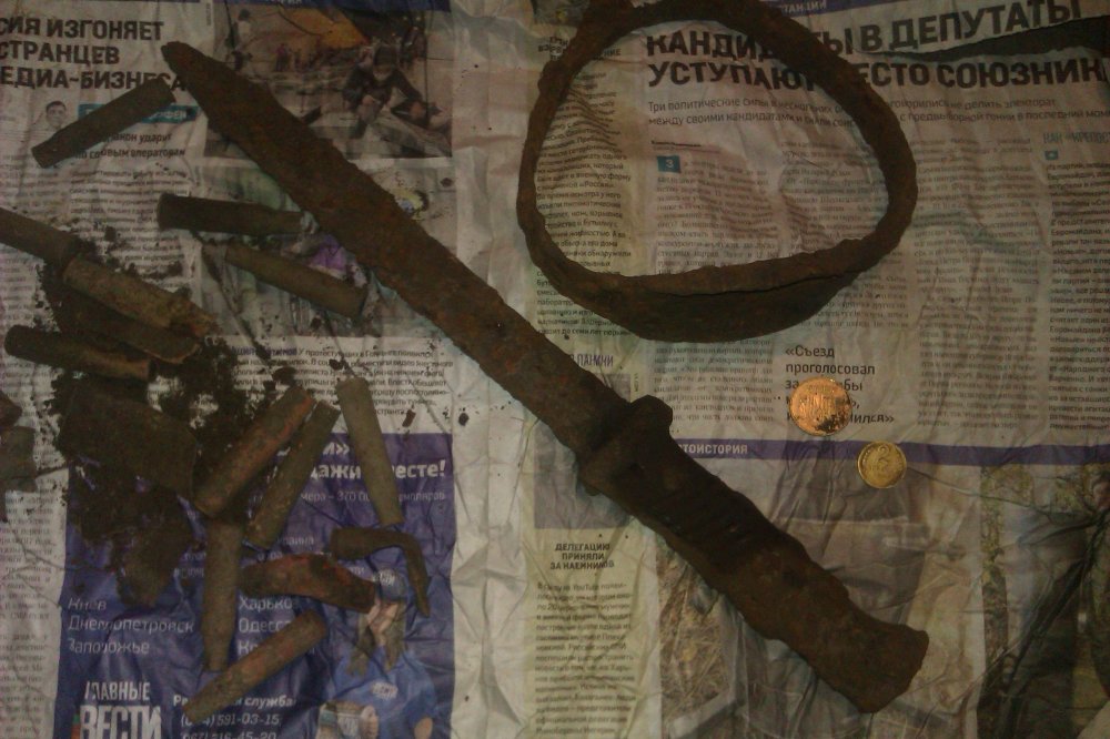 Пока харьковский копач собирал интересные находки .В километре от него собирал разную ерунду порадовал нож грибника.