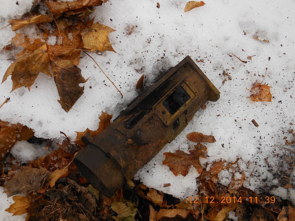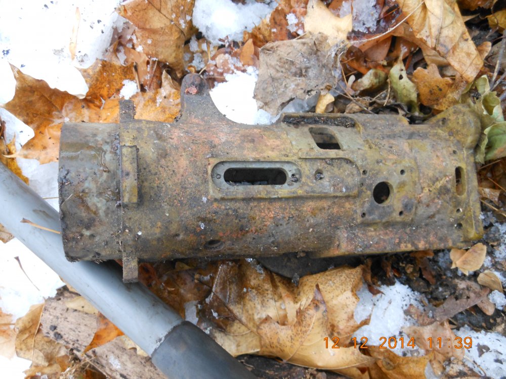По сегодняшним находкам латуни 5 кг хоть дорогу отбил. Непонятная вещица попалась полностью латунь ,в хаки краске.