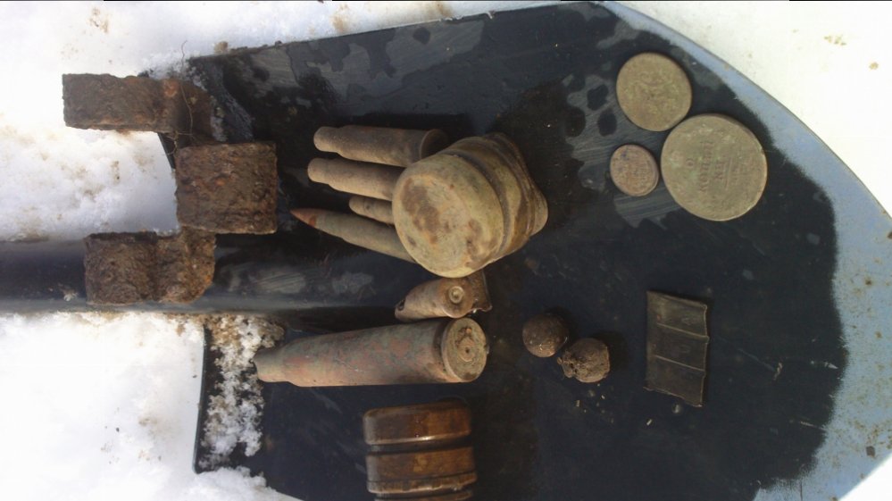 Всем доброго вечера! Сегодня потеплело, и я решил провести разведку насколько промерзла земля в лесу. Все оказалось не так печально, как ожидалось. Земля промерзла всего на 2-3 см, а местами не мерзлая вообще, там где листьев побольше. Думаю на полях по-грустнее будет: копнул на полянке в лесу - и после 5ти см желание пропало само собой. Из находок - "уставший" Мосинский затвор и гильза ПТР 42года, похоже с костра. P.S. Из старых находок - подскажите с чего боевая личинка? С уважением.